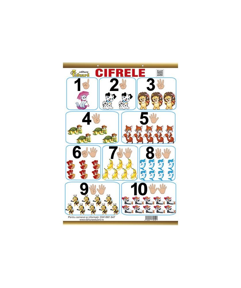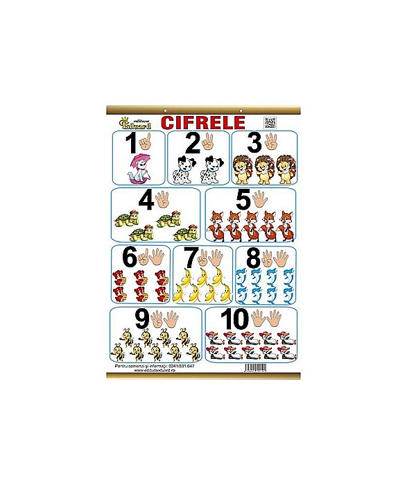 Aceasta plansa viu colorata vine in ajutorul copiilor pentru a invata cat mai usor cifrele.
