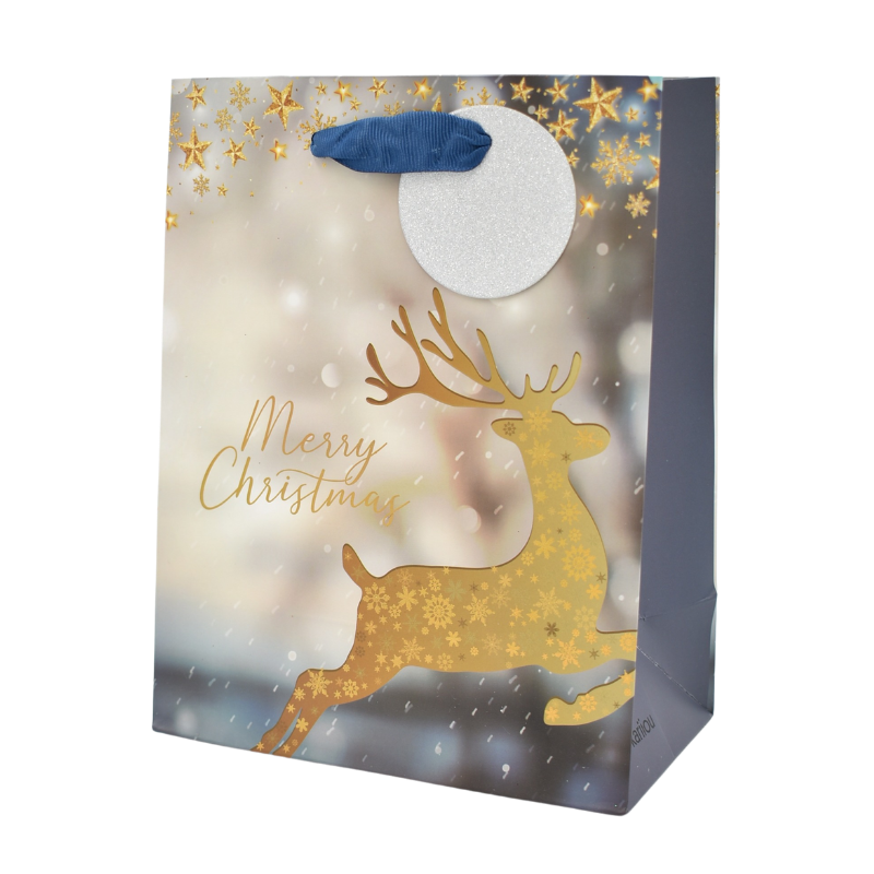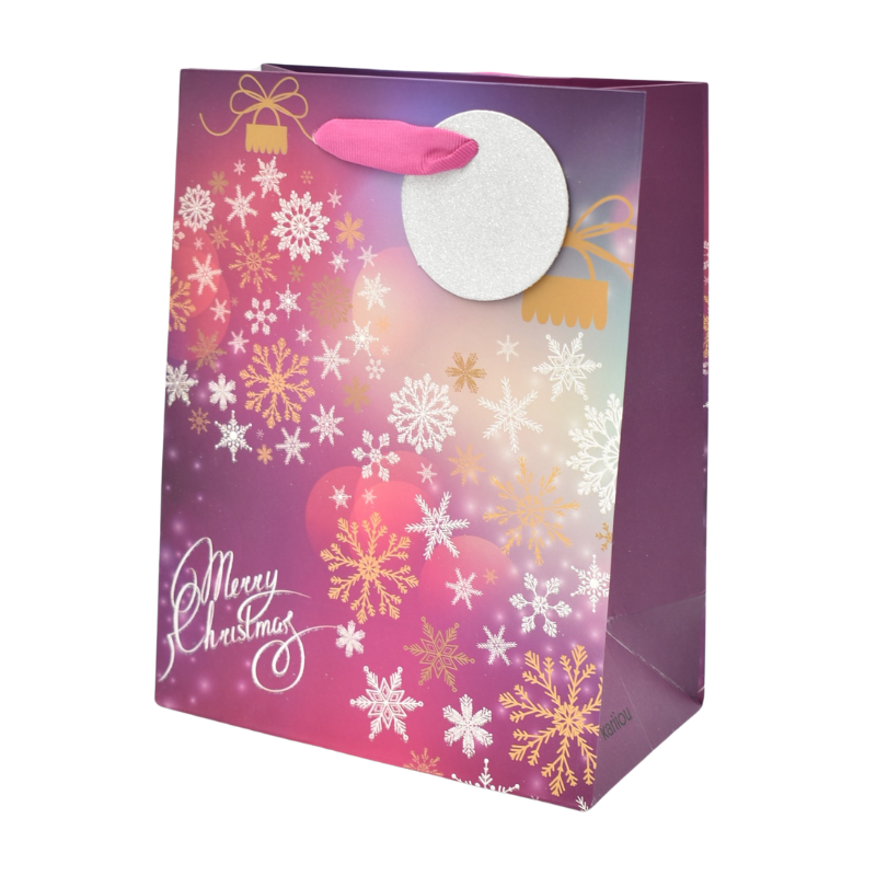 Alege o pungă de cadou elegantă pentru a oferi darurile de Crăciun într-un mod festiv și rafinat. Modelele colorate, cu accente aurii și mesaj „Merry Christmas”, aduc magia sărbătorilor în fiecare dar. Este practică, rezistentă și ideală pentru cadouri de dimensiuni medii.