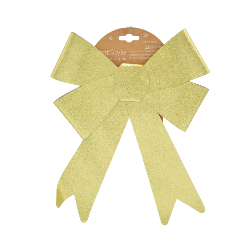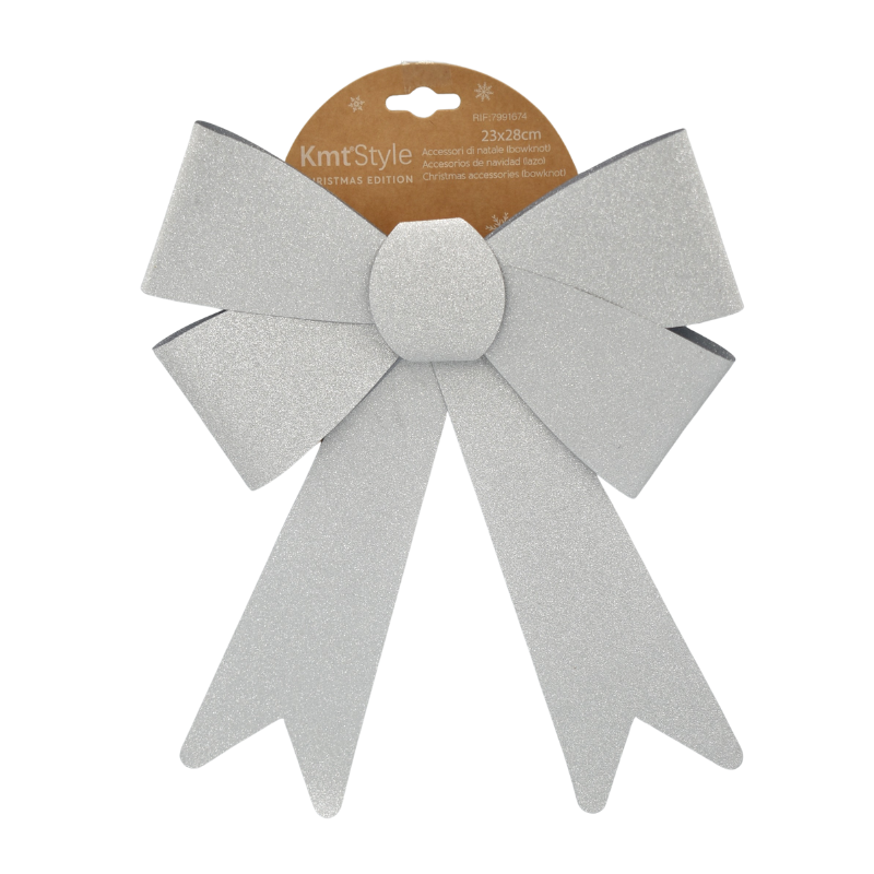 Fundița decorativă de Crăciun 23x28 cm este accesoriul perfect pentru a completa decorul tău de sărbători. Realizată din material rezistent, cu un aspect sclipitor și rafinat, această fundiță poate fi folosită pentru a împodobi bradul, coronițele, mesele festive sau chiar cadourile de sub pom.