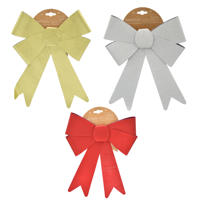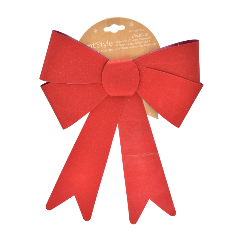 Fundița decorativă de Crăciun 23x28 cm adaugă un plus de eleganță și culoare oricărui decor festiv. Disponibilă în nuanțe de roșu, auriu și argintiu, este ideală pentru brad, uși, ferestre sau cadouri.