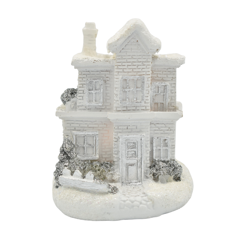 Căsuța de iarnă cu LED este o decorațiune de Crăciun fermecătoare, perfectă pentru a completa decorul de sezon. Realizată din rășină de calitate, cu finisaj detaliat în alb și argintiu, această piesă decorativă surprinde magia iernii prin aspectul său realist și accentele sclipitoare care reflectă frumusețea zăpezii.