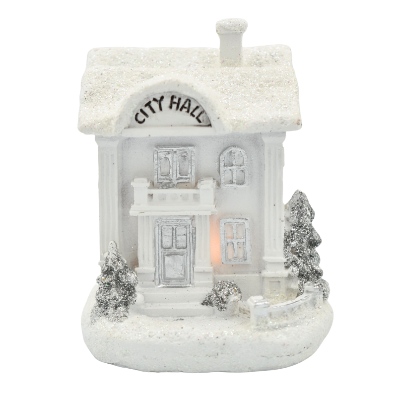 Casuta de iarna din rasina cu LED + baterie alb/argintiu