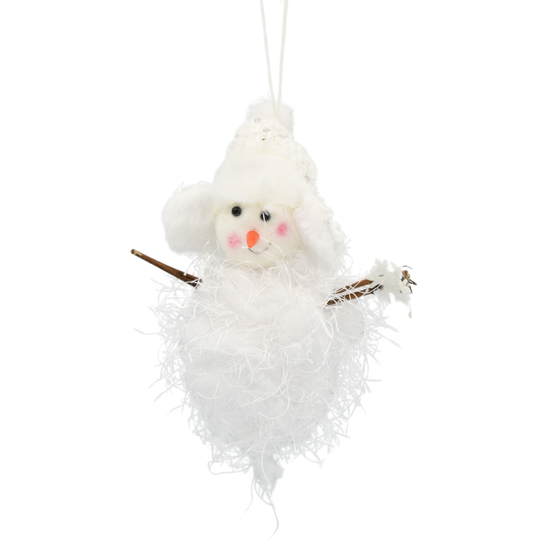 Această decorațiune cu om de zăpadă pufos adaugă un plus de farmec și culoare bradului tău de Crăciun. Realizat din materiale moi, cu detalii delicate și expresie veselă, este o alegere adorabilă pentru un decor festiv plin de bucurie. Îl poți atârna cu ușurință în brad sau îl poți folosi în aranjamente de sezon pentru un efect magic.