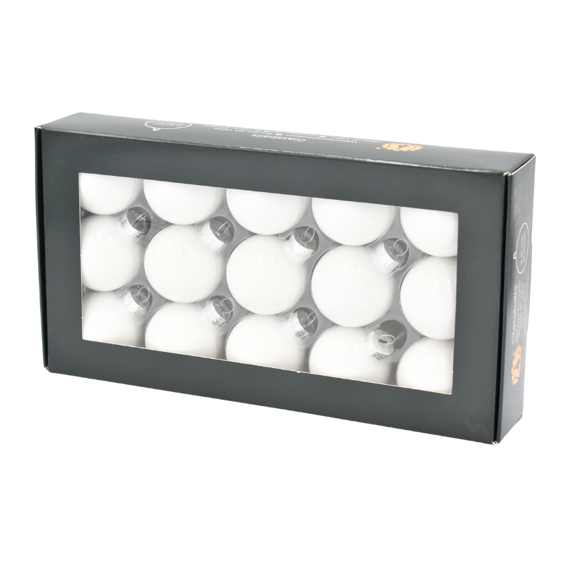 Fiecare glob are un diametru de 4 cm și este realizat din sticlă de calitate, cu finisaj lucios, care adaugă strălucire discretă bradului. Nuanța alb opal creează un contrast elegant cu verdele crengilor, potrivindu-se de minune cu alte ornamente argintii, aurii sau pastel.