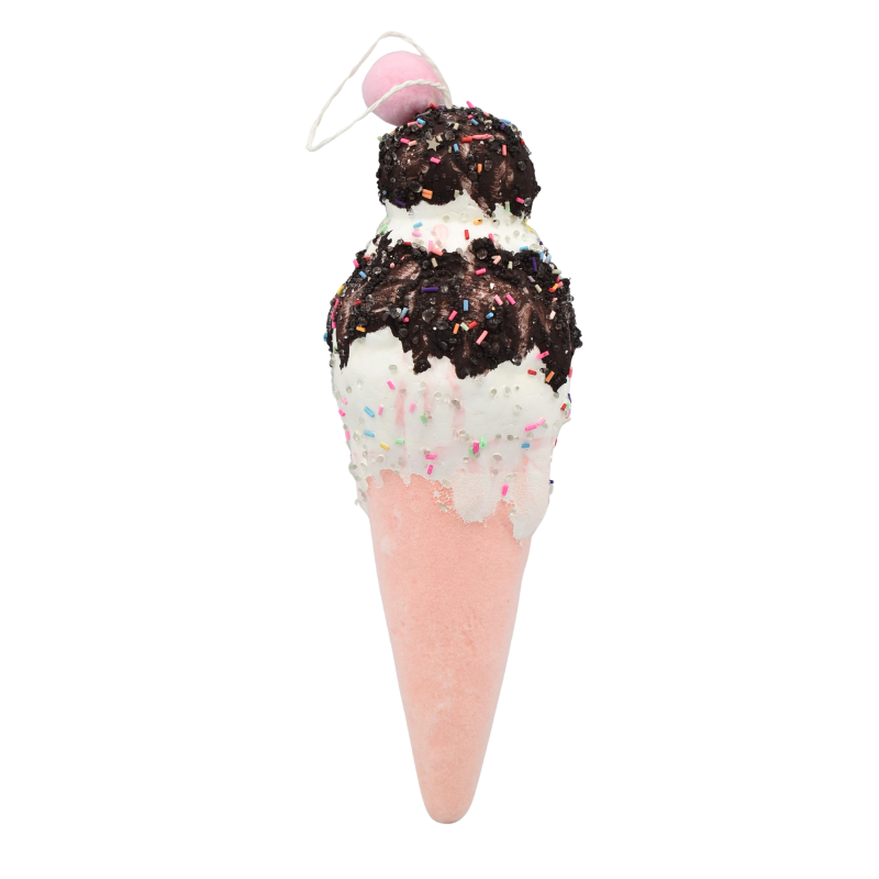 Acest ornament în formă de cornet cu înghețată este alegerea ideală dacă vrei un brad diferit, vesel și plin de farmec.