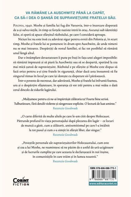 Ultimul baiat de la Auschwitz este o poveste adevărată, profund emoționantă, despre rezistență și legătura indestructibilă dintre frați, o mărturie care amintește cât de fragilă este libertatea și cât de puternică poate fi speranța.