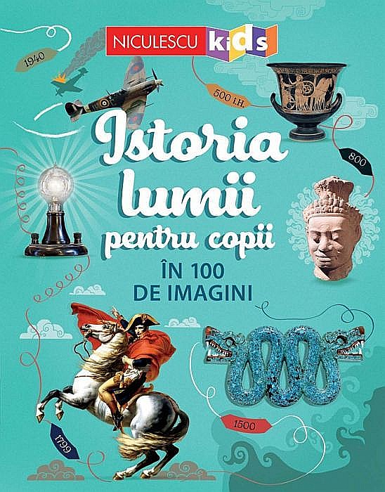 Istoria lumii pentu copii ne propune o călătorie captivantă, prin intermediul a 100 de imagini semnificative, de la picturile rupestre ale Epocii de Piatră până la computerele zilelor noastre. Descoperă evenimente-cheie ale istoriei universale şi felul în care marile imperii, bătăliile celebre, artişti, inventatori, oameni de ştiinţă şi exploratori au schimbat lumea de-a lungul istoriei.