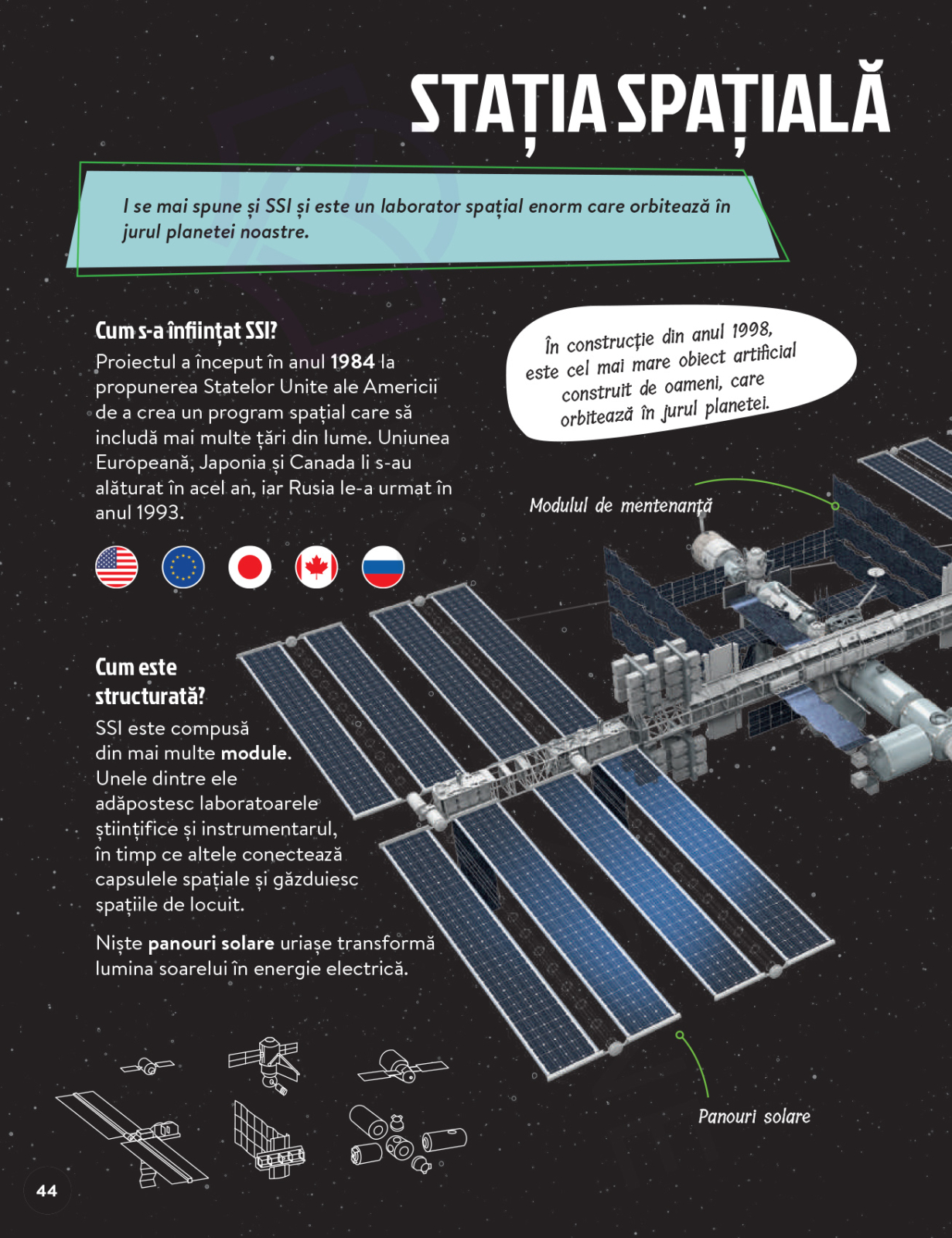 Cartea oferă informații interesante despre viața astronauților pe Stația Spațială Internațională, pregătirea necesară pentru a ajunge în spațiu și provocările traiului în imponderabilitate. Posterul include completează experiența de lectură și îi ajută pe cei mici să vizualizeze mai ușor misterele Universului.