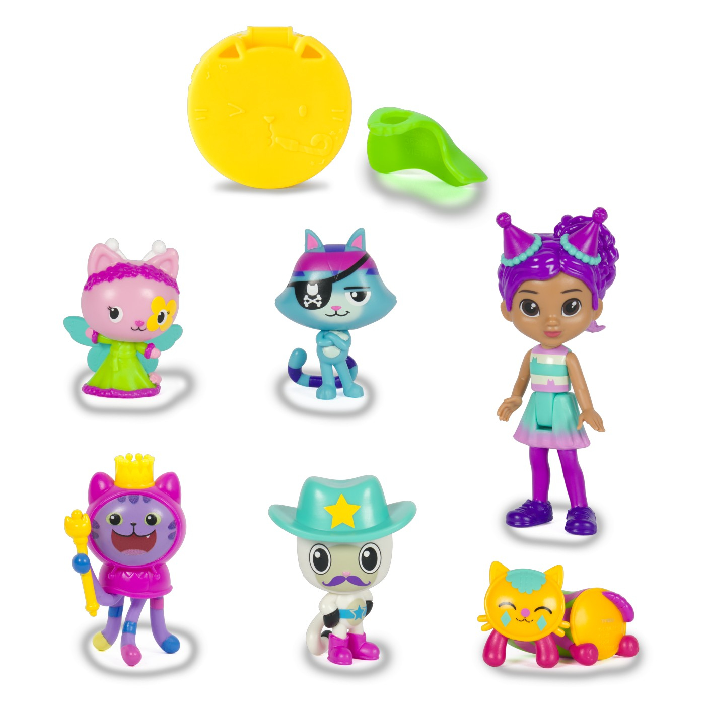 Paseste in lumea magica a casei de papusi a lui Gabby cu setul cadou Celebration Figure. Acest set exclusivist de personaje o prezinta pe Gabby si pisicutele ei preferate, precum Panda-Mat, DJ Mat, Matisor, Per-Mat si Miau-Zana. Ulterior, deschide cutia cu propria ta casa de papusi pentru a descoperi jucaria surpriza, o pelerina incantatoare. Pentru o surpriza suplimentara, scaneaza codul QR din pachetul casei de papusi pentru a debloca o recompensa speciala in aplicatia gratuita Gabby's Dollhouse, disponibila pe iOS si Android. Jucariile casa de papusi a lui Gabby pentru fete si baieti sunt cadouri minunate pentru copiii care sunt fani ai serialului de succes de pe Netflix si carora le place sa construiasca lumi in case de papusi. Fa memorabila intrarea lor in jocul din casa de papusi, cu o lume de personaje de jucarie adorabile, accesorii pentru case de papusi si mobilier pentru case de papusi pe care sa le colectionati si sa le personalizati. Construieste-ti lumea cu seturi esentiale pentru casa, cum ar fi o bucatarie de jucarie sau o camera de muzica, si o multime de articole de colectie, cum ar fi un minunat vas de croaziera de jucarie, o piscina cu tema sirenelor si noul set de joaca Party Room – mansarda casei de papusi cu un parc de skateboarding in interior si balcoane super dragute, cu mini jucarii fidget care ofera o super-experienta de joaca senzoriala si functioneaza perfect cu ambele versiuni ale casei de papusi.