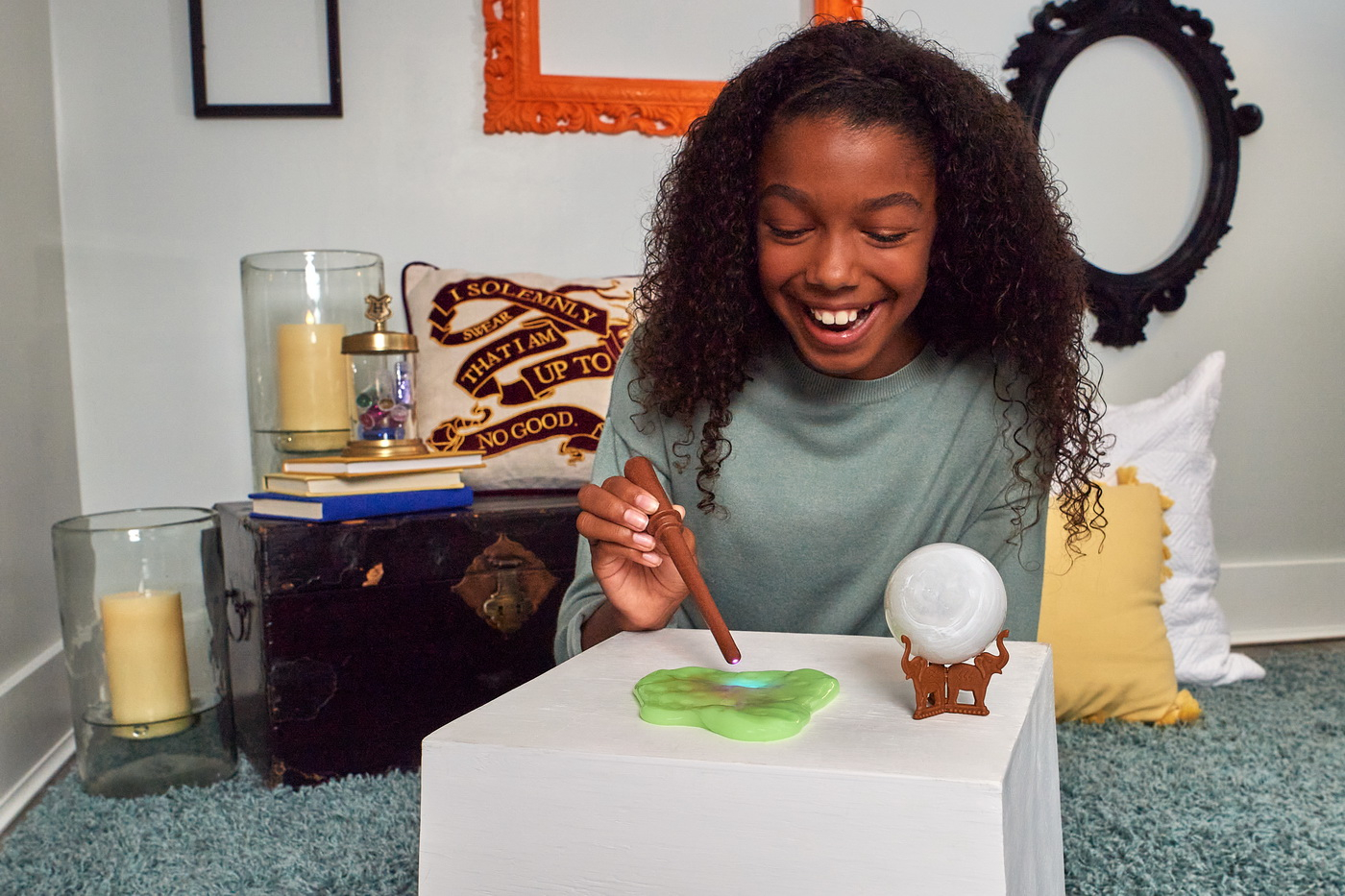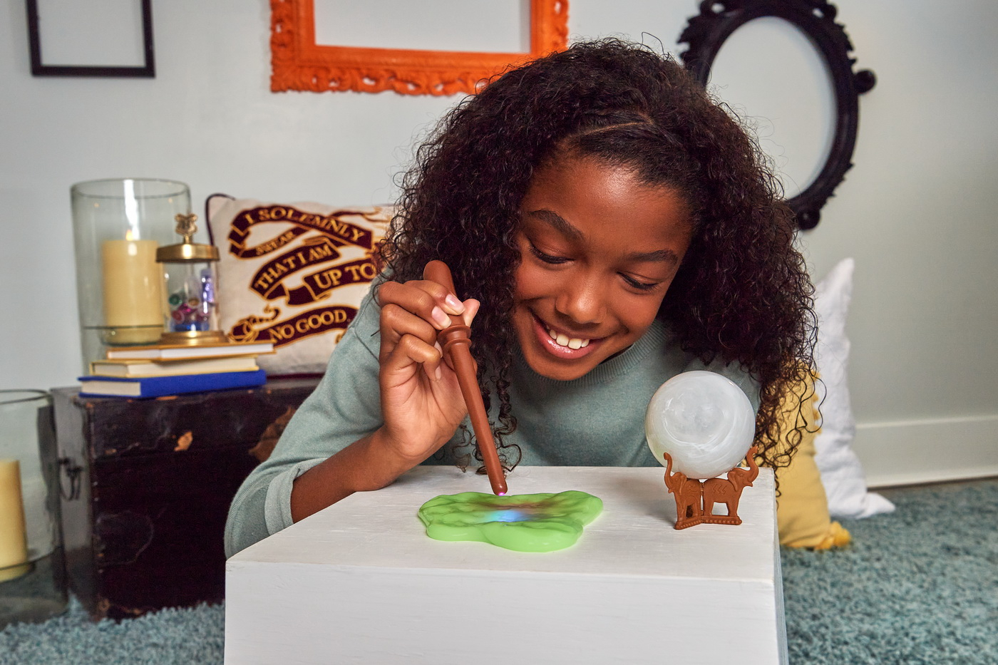 Simtiti magia cunoscuta din lumea lui Harry Potter datorita setului de potiuni magice! Acest set include plastic stralucitor in intuneric si o bagheta Harry Potter de 7 cu lumina LED (3 baterii LR44 incluse). Vrajitoarele, vrajitorii si muggii tineri pot folosi bagheta pentru a experimenta potiuni magice. Deschideti recipientul si intindeti amestecul pentru a-l pregati pentru joaca. Opriti becurile si aprindeti totul cu o bagheta pentru a vedea masa stralucind magic! Potiunile magice pot fi folosite si ca o jucarie senzoriala extraordinara - intindeti, strangeti, strangeti masa si apoi aprindeti-o cu ajutorul unei baghete. Ambalajul este o replica a globului de cristal folosit in ghicire! Acest set fermecator este un cadou minunat Harry Potter pentru copii cu varsta peste 6 ani. Acest set contine un glob verde.