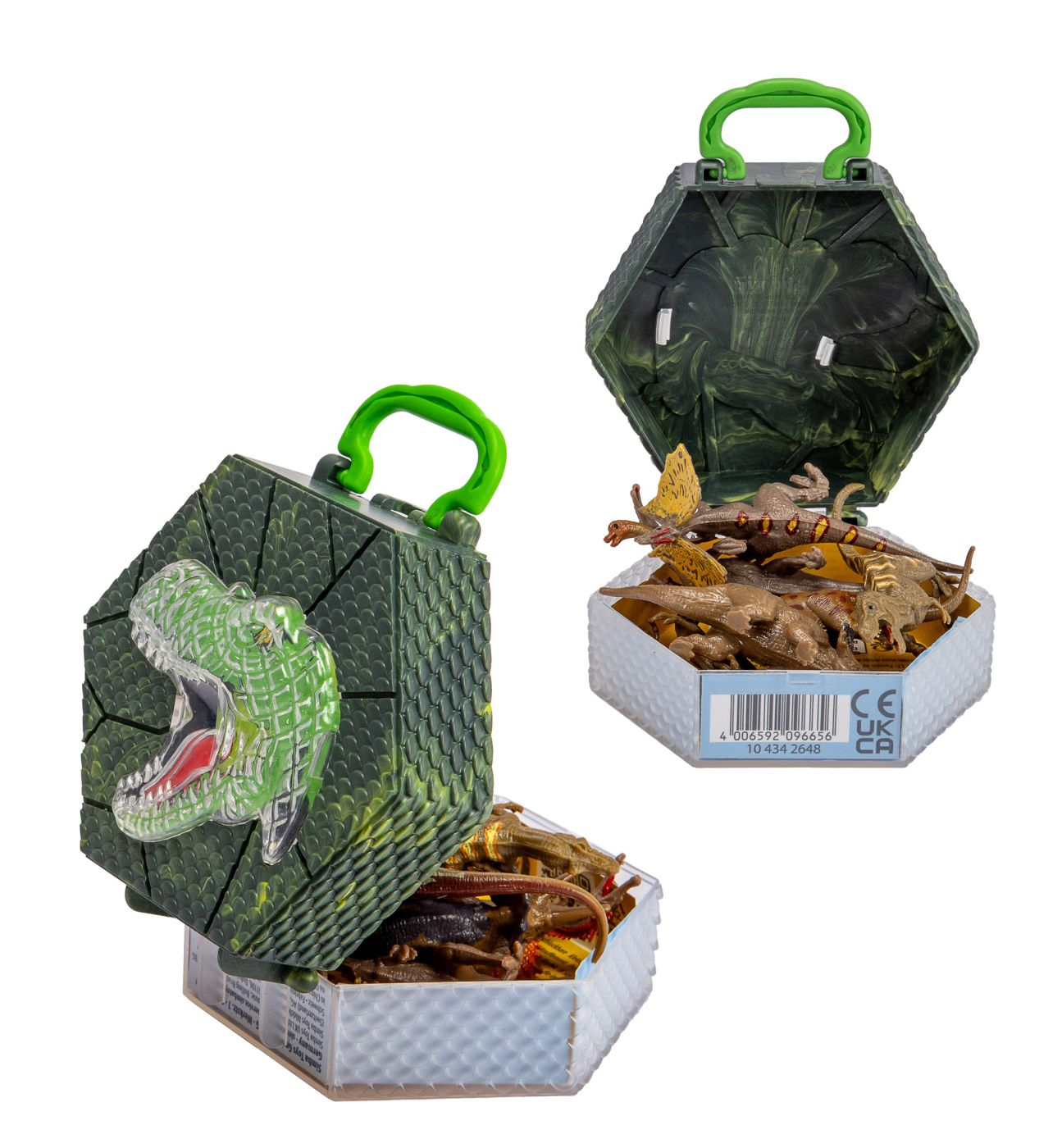 Set figurine dinozauri in cutii piramida, 6 modele diferite, pentru copii de la 3 ani in sus. Intra in lumea preistorica cu Nature World Dino de la Simba! Descopera cei mai fiorosi si fascinanti dinozauri, ascunsi in cutii in forma de piramida, gata sa fie eliberati pentru aventuri spectaculoase. Potrivit pentru copiii de la 3 ani in sus. Sigur, distractiv si educational, acest set ofera ore intregi de joaca activa si creativa. Include: 1 figurina dinozaur la intamplare intr-o cutie piramida. Disponibile 6 modele diferite. Produs livrat aleator.