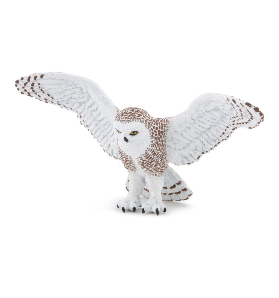 Ce poate fi mai frumos decat sa explorezi varietatea speciilor de animale si pasari existente pe Terra. Figurina Bufnita de zapada este replica unei pasari de prada intr-o postura extrem de naturala. Bufnita de zapada poate fi parte din jocul tau daca doresti!. Exploreaza prin figurinele Papo care aduc mai aproape de tine aceasta lume fascinanta. Bufnitele de zapada sunt predominant albe cu pete si dungi maron inchis. Femelele tind sa aiba mai multe marcaje decat masculii, care pot deveni aproape complet albi pe masura ce inainteaza in varsta. Bufnitele de zapada tinere sunt, in general, mai inchise la culoare, iar marcajele lor sunt mult mai multe si mai evidente decat cele ale adultilor. Bufnitele de zapada au ochii galbeni, iar picioarele si degetele lor complet albe sunt acoperite cu pene albe care le protejeaza de vremea rece. Ciocul bufnitei de zapada este negru. Desi are dimensiuni destul de mari pentru o zburatoare: lungimea corpului de pana la 71 de centimetri si anvergura aripilor de peste un metru si jumatate, aceasta pasare este un pradator extrem de eficient, fiind printre putinele specii de pasari de prada in afara pericolului de disparitie. De mai bine de 20 de ani, Papo inoveaza constant si ii face pe copii din intreaga lume sa viseze cu o gama bogata de peste 600 de produse, reprezentand 12 lumi, animale si personaje. De la modelul original la serie, fiecare dintre figurinele Papo a fost conceputa si creata in Franta pentru a fi fabricata intr-o permanenta preocupare pentru calitate. Pictate manual, atentia la detalii este acum recunoscuta. Figurinele Papo se disting prin acuratete si realism, detaliile sunt de asa natura incat am putea crede ca se vor pune in miscare.