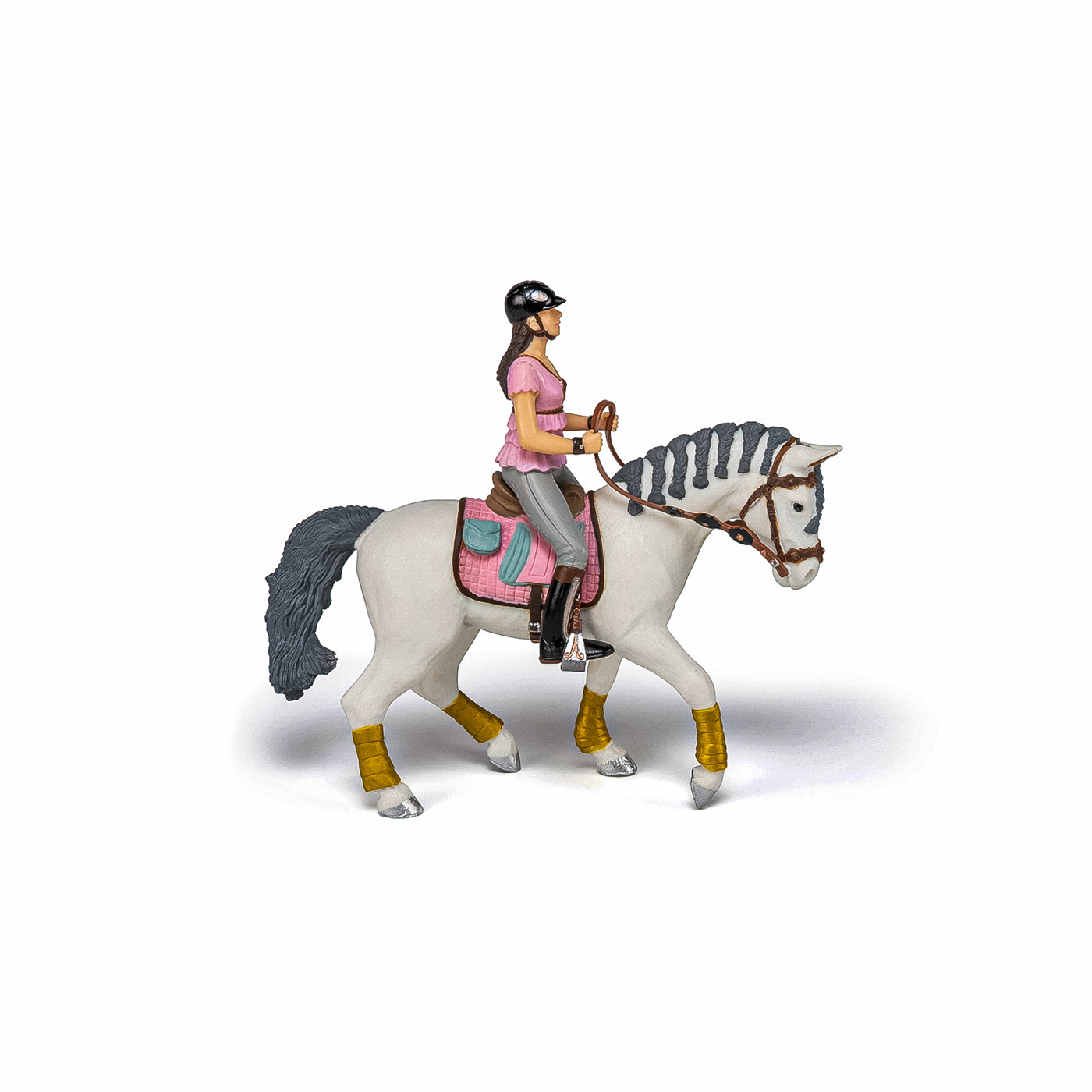 Faceti o plimbare prin campuri cu ecvinele Papo, participati la concursuri de sarituri sau chiar la cursuri de dresaj. O impletitura a comei si/sau a cozii, bine realizata este adesea considerata un mod excelent de a arata cat de bine ingrijit si pretuit este acel cal. Produsul are urmatoarele dimensiuni: 14.5 x 5 x 9.5cm si este recomandat copiilor cu varsta peste 3 ani. De mai bine de 20 de ani, Papo inoveaza constant si ii face pe copii din intreaga lume sa viseze cu o gama bogata de peste 600 de produse, reprezentand 12 lumi, animale si personaje. De la modelul original la serie, fiecare dintre figurinele Papo a fost conceputa si creata in Franta pentru a fi fabricata intr-o permanenta preocupare pentru calitate. Pictate manual, atentia la detalii este acum recunoscuta. Figurinele Papo se disting prin acuratete si realism, detaliile sunt de asa natura incat am putea crede ca se vor pune in miscare.
