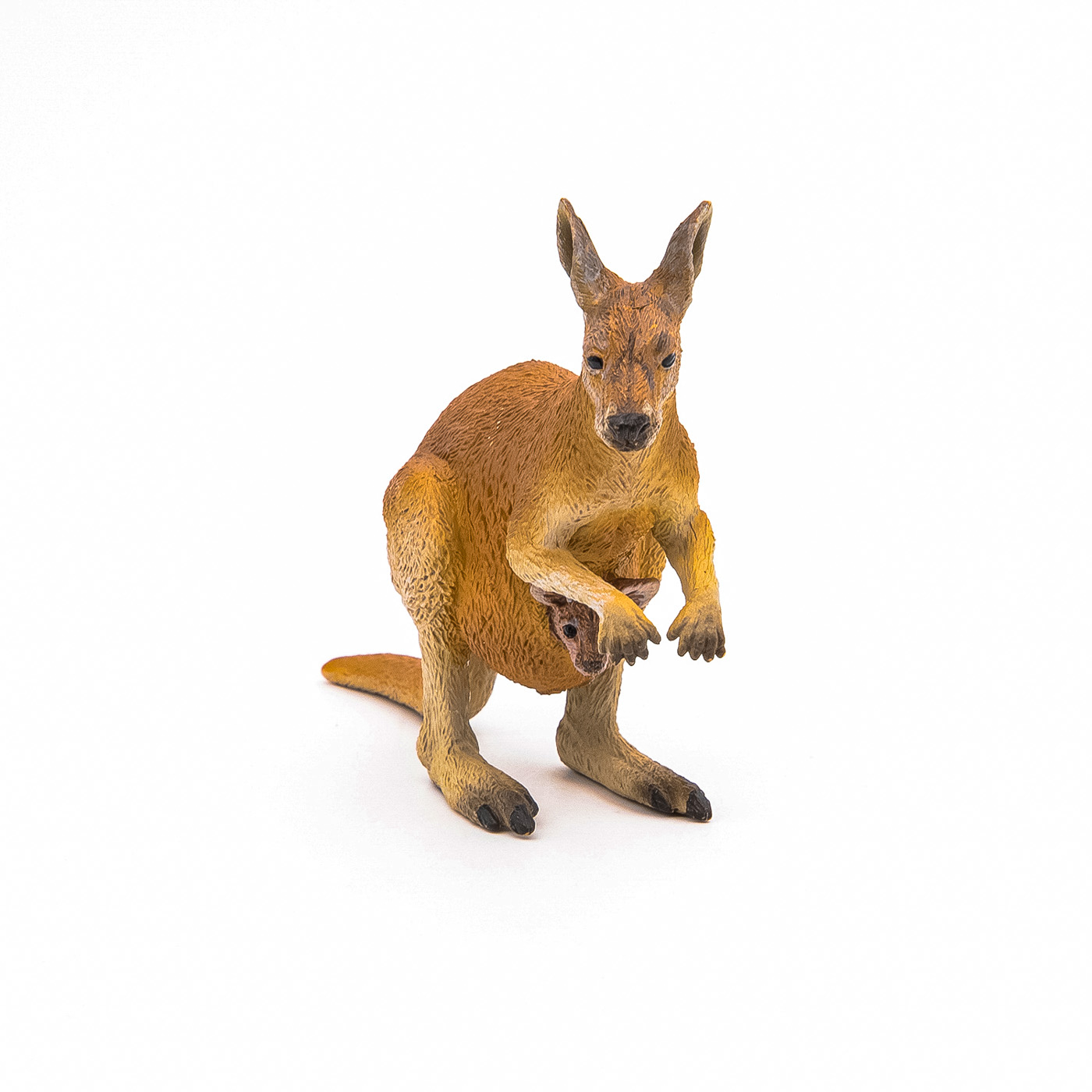 Vizitati cerbul cu coada alba maiestuoasa in inima padurilor, explorati savana alaturi de puternicul tigru de Sumatra sau urcati pe varfuri acoperite de zapada pentru a cauta leopardul de zapada. stiti ca cangurul este capabil sa-si intrerupa sarcina si poate avea pana la 3 bebelusi in acelasi timp in buzunar? La nastere, bebelusul masoara 2 pana la 3 cm si cantareste 1 g, ramane intre 235 si 250 de zile in buzunarul mamei. isi scoate capul din buzunar pentru prima data in jur de 5 pana la 6 luni. A parasit definitiv buzunarul 3 luni mai tarziu. Mama cangur este foarte atenta cand sare, pana la 3 metri, isi strange si contracta muschii pentru ca bebelusul ei sa ramana pe loc. Forma speciala a picioarelor si grosimea cozii o ajuta sa mearga cu usurinta. Cangurul este cel mai mare marsupial din lume care se gaseste in Australia continentala, Tasmania si Noua Guinee, dimensiunea lui poate depasi pe cea a unui om si se hraneste cu ierburi, frunze si lastari de copaci. Produsul are urmatoarele dimensiuni: 10 x 3.5 x 7.5cm si este recomandat copiilor cu varsta peste 3 ani. De mai bine de 20 de ani, Papo inoveaza constant si ii face pe copii din intreaga lume sa viseze cu o gama bogata de peste 600 de produse, reprezentand 12 lumi, animale si personaje. De la modelul original la serie, fiecare dintre figurinele Papo a fost conceputa si creata in Franta pentru a fi fabricata intr-o permanenta preocupare pentru calitate. Pictate manual, atentia la detalii este acum recunoscuta. Figurinele Papo se disting prin acuratete si realism, detaliile sunt de asa natura incat am putea crede ca se vor pune in miscare.