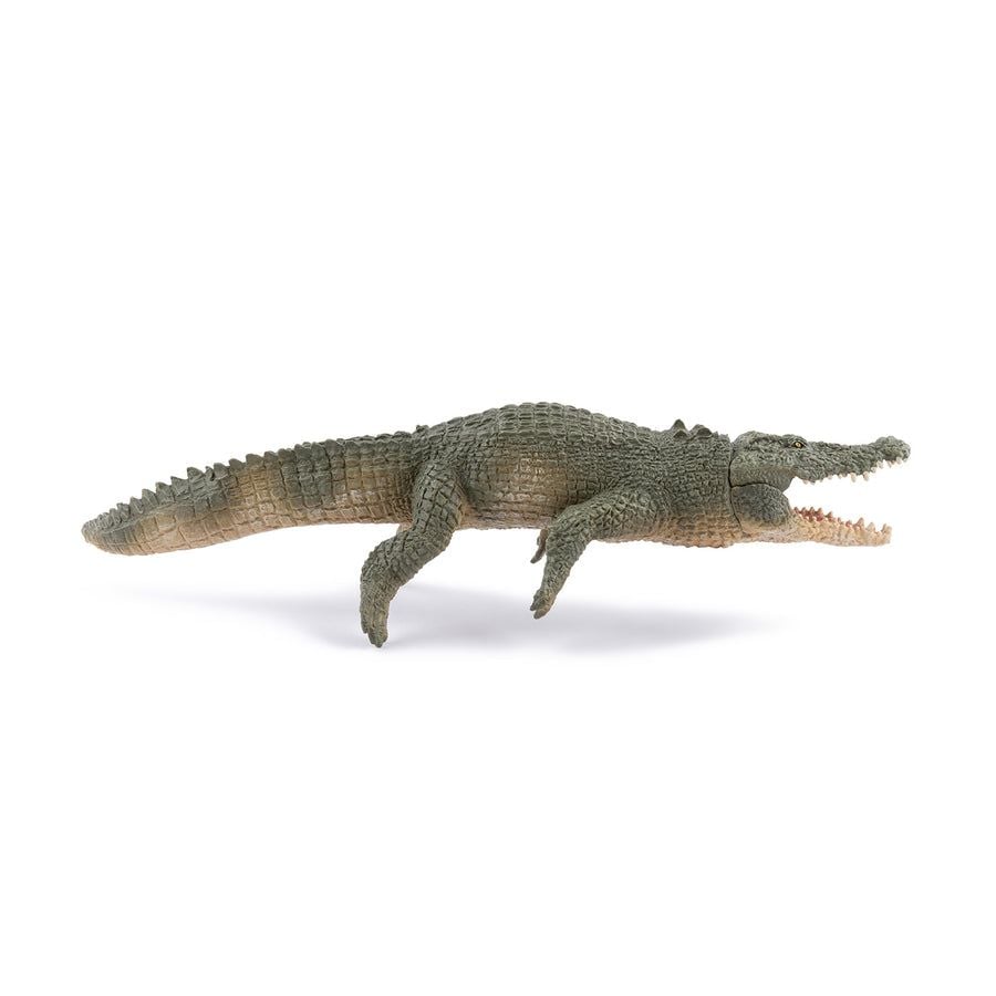 Crocodilul de apa sarata este cea mai mare reptila vie din lume. Acest vanator formidabil traieste in rauri, mangrove si de-a lungul coastelor Asiei de Sud-Est si Australiei. Capabil sa ramana nemiscat timp de cateva minute la suprafata apei, isi observa discret prada inainte de a ataca cu o precizie impresionanta. Un fapt uimitor: acest crocodil poate ajunge la peste 6 metri lungime si are unele dintre cele mai puternice falci din regnul animal, capabile sa exercite o presiune de peste 2 tone! In ciuda dimensiunilor sale masive, este un inotator excelent si poate calatori pe distante lungi pe mare. Figurina Papo reproduce cu fidelitate acest gigant al apelor: solzi sculptati, maxilar articulat si poza realista. Un model impresionant care va va imbogati colectia de animale salbatice.