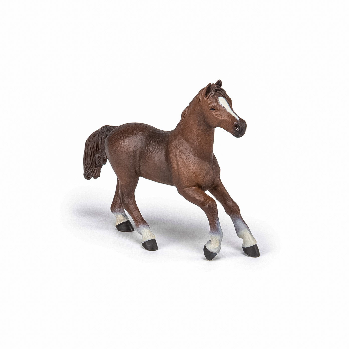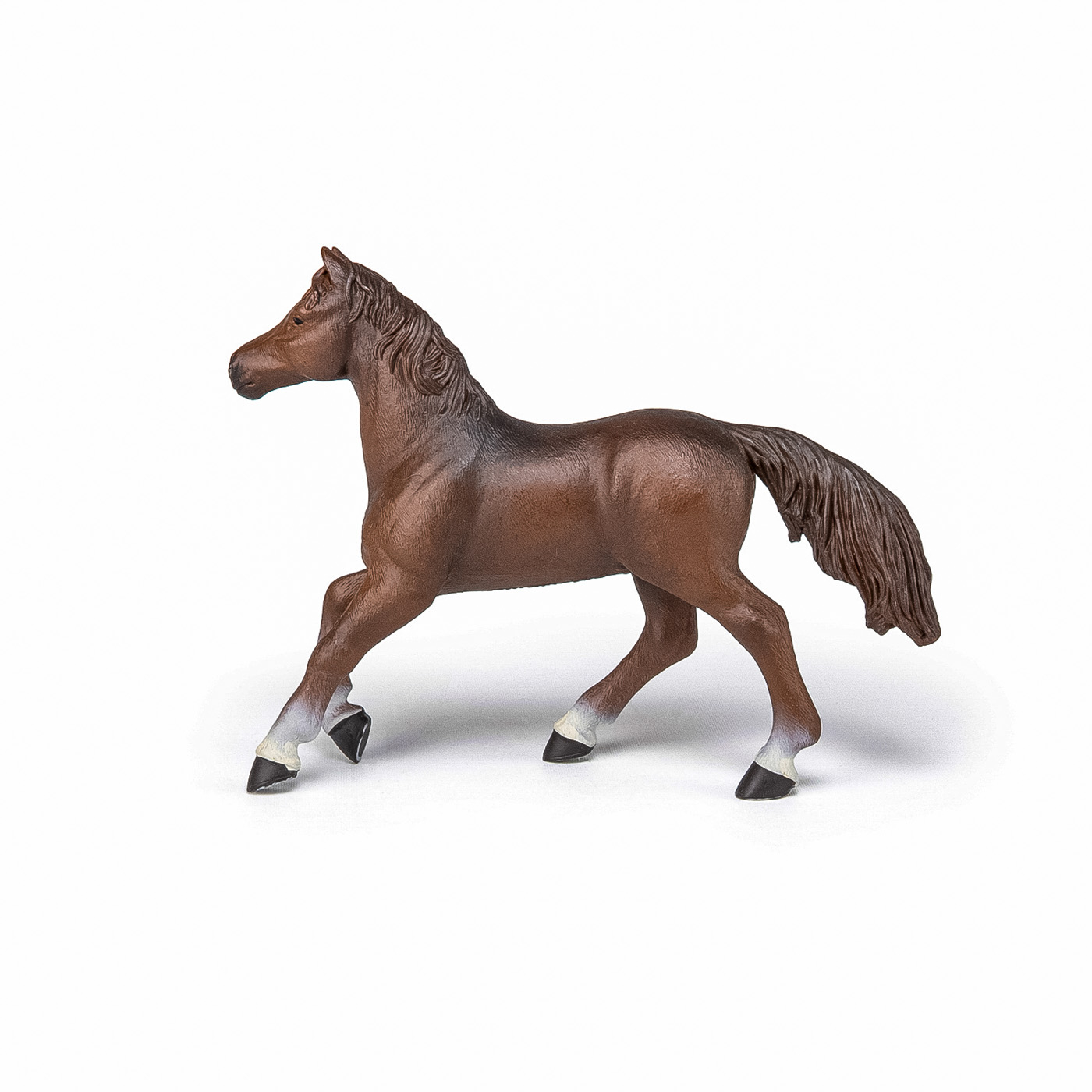 Faceti o plimbare prin campuri cu ecvinele Papo, participati la concursuri de sarituri sau chiar la cursuri de dresaj. Anglo-Araba este o rasa de cai cu sange cald provenit din Franta. Acest cal este in primul rand rezultatul incrucisarii unui cal pursange cu un cal arab. Anglo-Arab se caracterizeaza prin aspectul sau, lejeritatea, priceperea, curajul si personalitatea sa puternica. Despre anglo-arab se spune in general ca este un cal de sa versatil, foarte atletic deoarece este rezultatul a doua rase cu abilitati sportive excelente. Este putin mai mare decat arabul, dar dimensiunea sa a avut tendinta de a creste si nu este rar ca acestea sa ajunga la 1,66 m la greaban. Produsul are urmatoarele dimensiuni: 16 x 12 x 3cm si este recomandat copiilor cu varsta peste 3 ani. De mai bine de 20 de ani, Papo inoveaza constant si ii face pe copii din intreaga lume sa viseze cu o gama bogata de peste 600 de produse, reprezentand 12 lumi, animale si personaje. De la modelul original la serie, fiecare dintre figurinele Papo a fost conceputa si creata in Franta pentru a fi fabricata intr-o permanenta preocupare pentru calitate. Pictate manual, atentia la detalii este acum recunoscuta. Figurinele Papo se disting prin acuratete si realism, detaliile sunt de asa natura incat am putea crede ca se vor pune in miscare.
