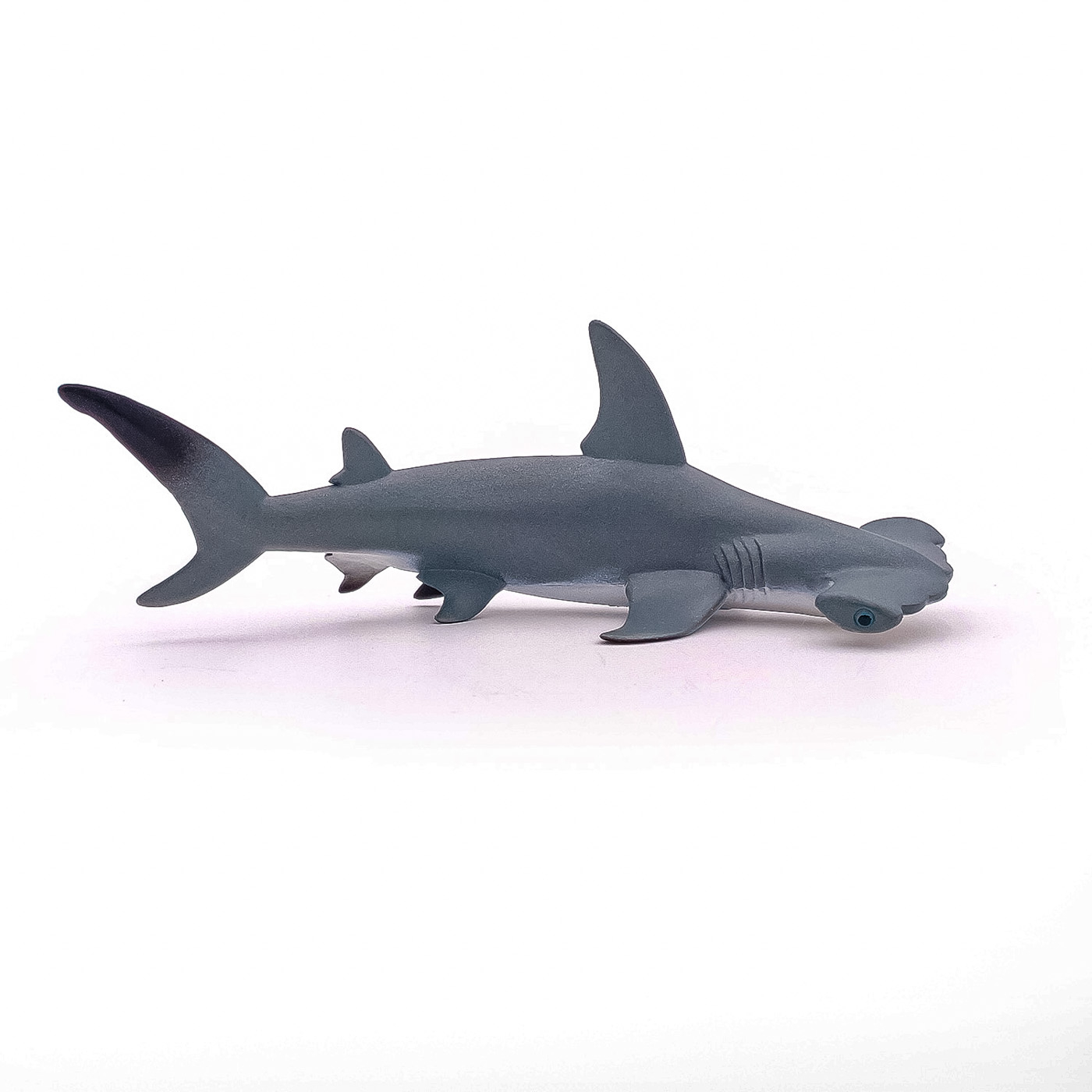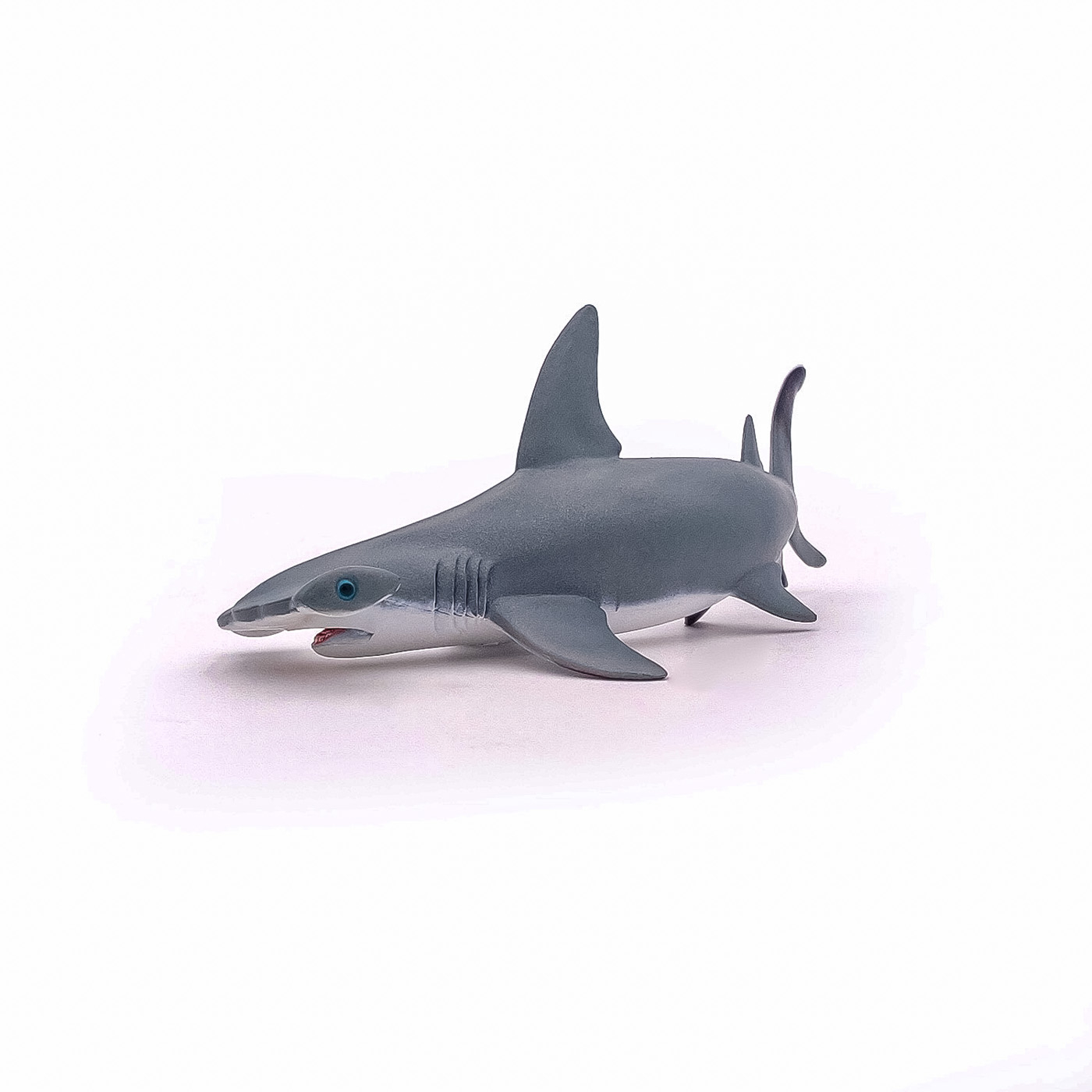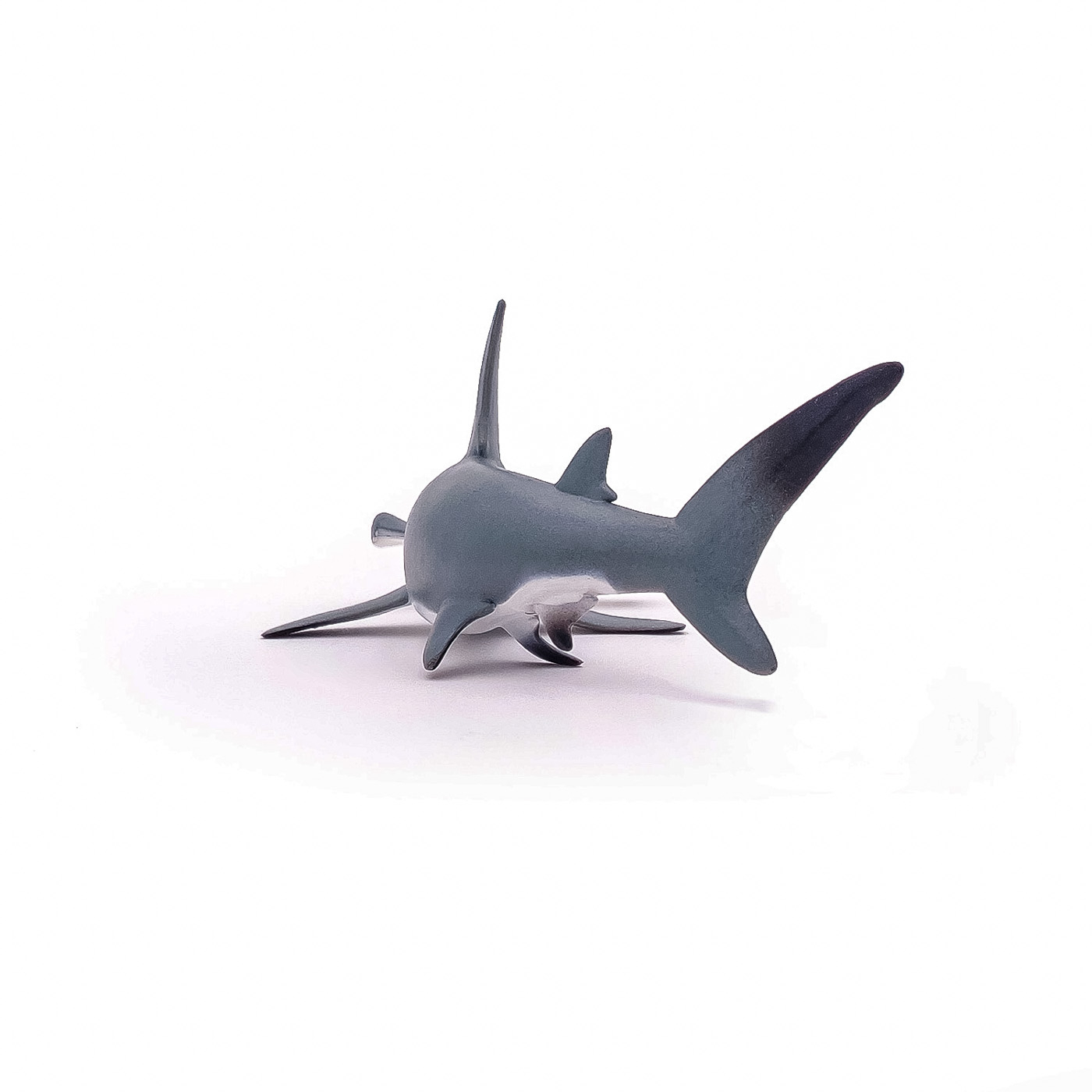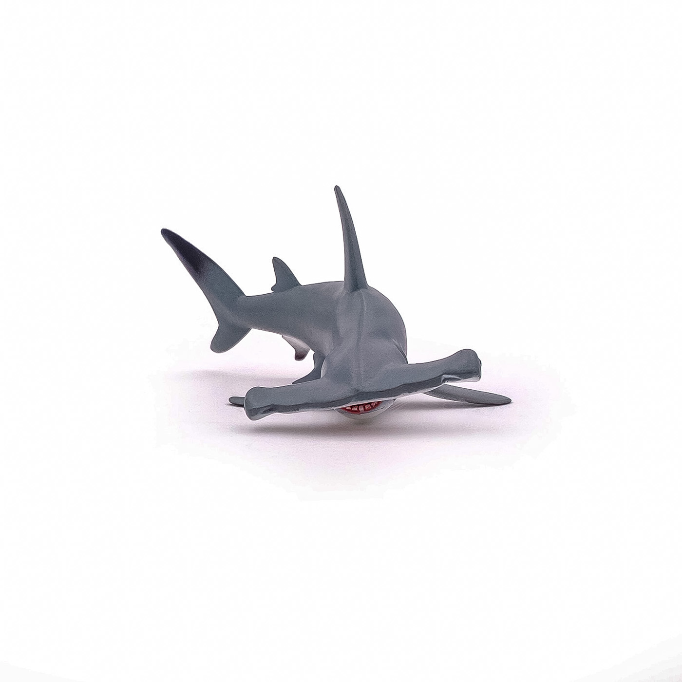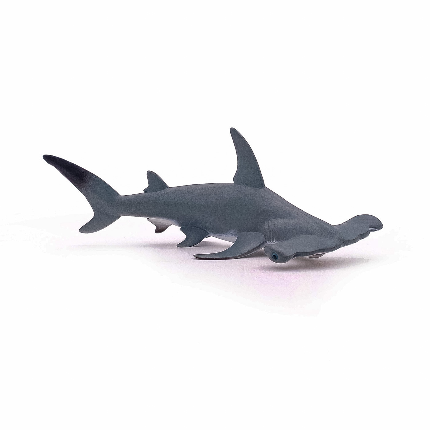 Scufundati-va cu balenele cu cocoasa, sariti in valuri alaturi de delfini sau deveniti un om-broasca capabil sa exploreze adancurile oceanului in cautarea unor exemplare magnifice precum pestele clovn. Rechinul-ciocan este o specie de peste usor de recunoscut, cu proeminente mari plate pe cap si cu ochii in lateral. Forma capului imbunatateste manevrabilitatea in apropiere. Poate masura pana la 5 m lungime si cantareste pana la 150 kg. Rechinul-ciocan se gaseste in toate oceanele tropicale si in apele de coasta putin adanci. Mananca in principal calmari, caracatite si crustacee. Desi tinerii formeaza adesea grupuri, adultii sunt mai degraba solitari. Produsul are urmatoarele dimensiuni: 17 x 8 x 6.3cm si este recomandat copiilor cu varsta peste 3 ani. De mai bine de 20 de ani, Papo inoveaza constant si ii face pe copii din intreaga lume sa viseze cu o gama bogata de peste 600 de produse, reprezentand 12 lumi, animale si personaje. De la modelul original la serie, fiecare dintre figurinele Papo a fost conceputa si creata in Franta pentru a fi fabricata intr-o permanenta preocupare pentru calitate. Pictate manual, atentia la detalii este acum recunoscuta. Figurinele Papo se disting prin acuratete si realism, detaliile sunt de asa natura incat am putea crede ca se vor pune in miscare.