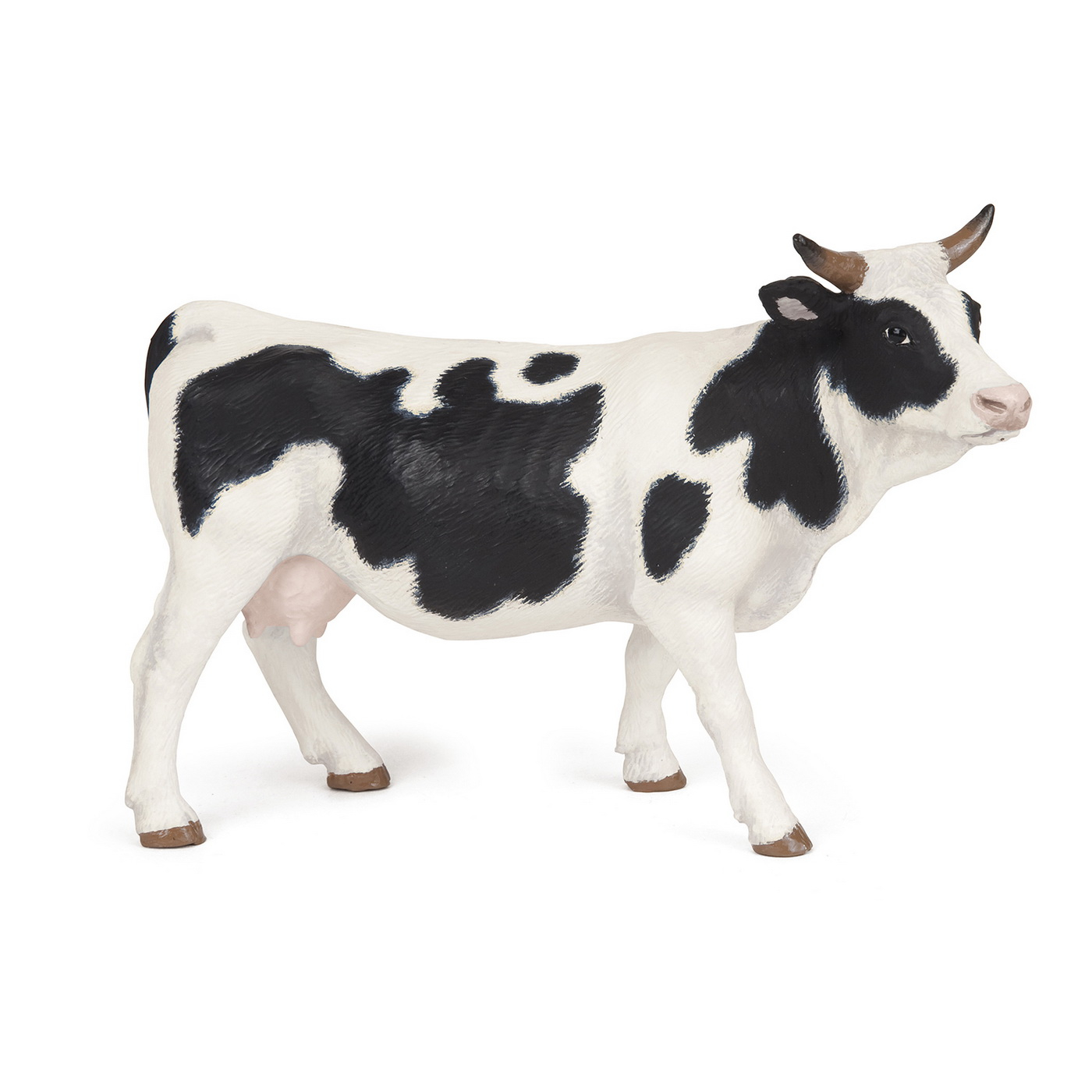 Cu figurinele universului fermei, trezeste-te cu cantatul cocosului, mergi sa hranesti animalele si ridica fructele si legumele gradinii de legume. Blana se refera la culoarea unei vaci si la grosimea parului acesteia. Blana „alb-negru” este cea mai cunoscuta, asa cum este frecvent intalnita astazi, in special cu rasa „Holstein” din Olanda. Fiecare vaca blana distincta, cu pete de diferite forme si dimensiuni! Produsul are urmatoarele dimensiuni: 14 x 6 x 9cm si este recomandat copiilor cu varsta peste 3 ani. De mai bine de 20 de ani, Papo inoveaza constant si ii face pe copii din intreaga lume sa viseze cu o gama bogata de peste 600 de produse, reprezentand 12 lumi, animale si personaje. De la modelul original la serie, fiecare dintre figurinele Papo a fost conceputa si creata in Franta pentru a fi fabricata intr-o permanenta preocupare pentru calitate. Pictate manual, atentia la detalii este acum recunoscuta. Figurinele Papo se disting prin acuratete si realism, detaliile sunt de asa natura incat am putea crede ca se vor pune in miscare.