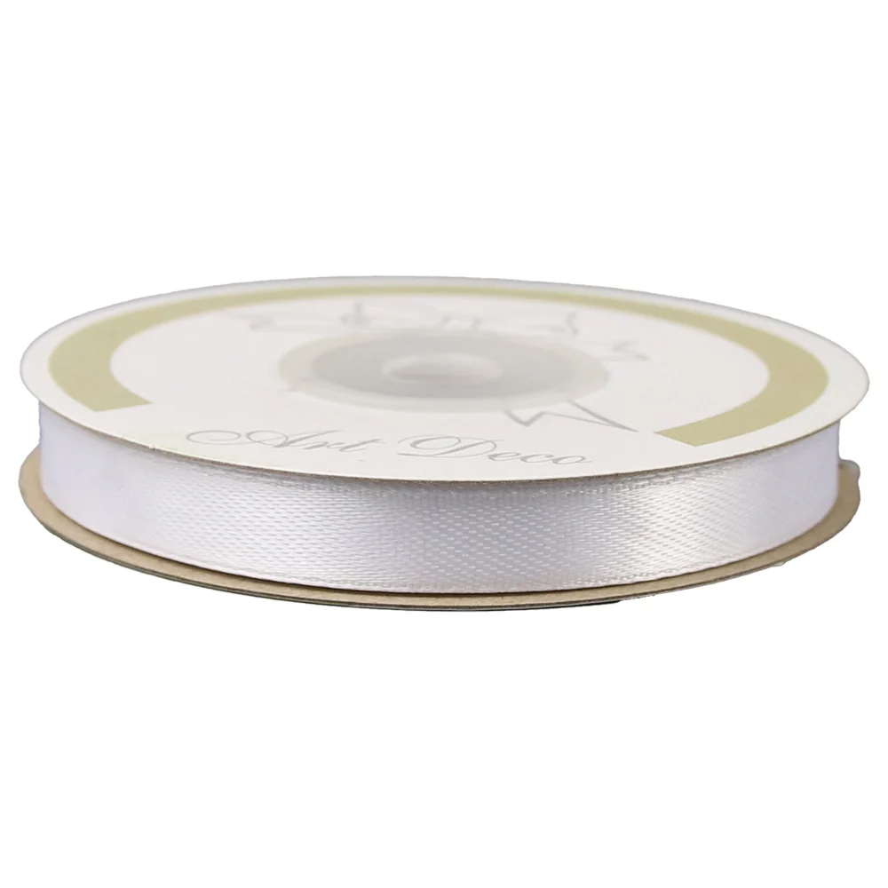 Această rolă de panglică din satin alb, Art Deco, este destinată utilizărilor decorative care necesită un finisaj curat și rafinat. Panglică are o lățime de 10 mm și o lungime de 25 metri, oferind suficient material pentru ambalarea cadourilor, realizarea fundelor, decorarea aranjamentelor florale sau a proiectelor handmade.