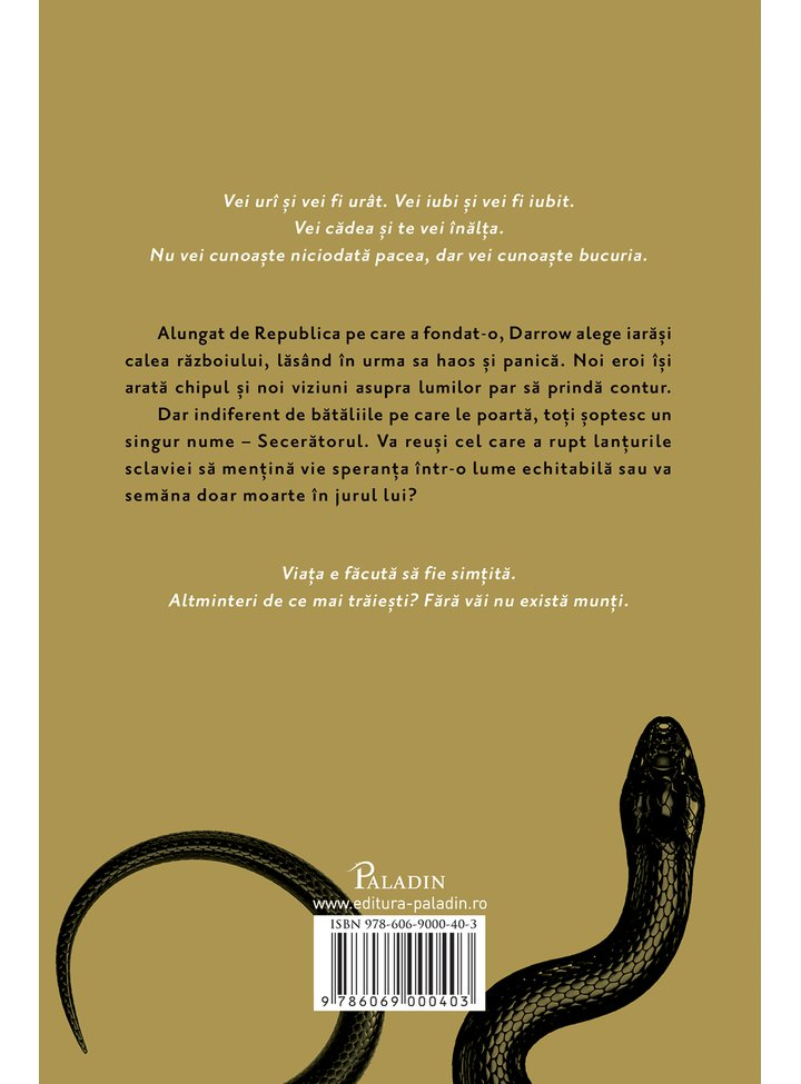 Un roman SF intens, plin de acțiune și conflicte. Darrow revine în mijlocul războiului pentru a lupta pentru idealurile sale. O poveste epică despre putere, sacrificiu și speranță.