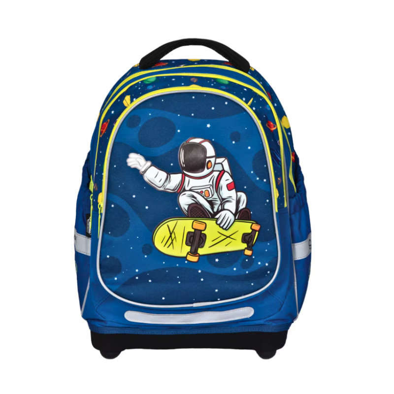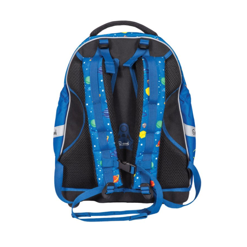 Spatele anatomic, cu burete gros și zone de ventilație, asigură circulația aerului și susține postura corectă a copilului pe tot parcursul zilei. Bretelele late, reglabile și căptușite, distribuie greutatea eficient și previn oboseala umerilor, chiar și când ghiozdanul este plin. Materialul exterior este rezistent la uzură și umezeală, iar baza ranforsată menține forma ghiozdanului și protejează conținutul de șocuri sau murdărie. Elemente reflectorizante sunt plasate strategic pentru vizibilitate sporită în trafic. Designul cu tematică spațială, în culori vibrante, adaugă un plus de energie și inspirație fiecărei zile de școală. Ghiozdanul anatomic Space S‑Cool oferă combinația perfectă între funcționalitate, confort și siguranță, fiind potrivit pentru elevii din ciclul primar sau gimnazial.