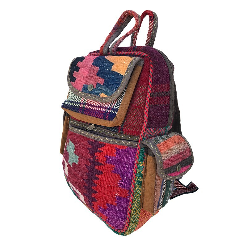 Acest rucsac textil multicolor îmbină armonios motivele tradiționale cu funcționalitatea modernă, fiind potrivit atât pentru adulți, cât și pentru tineri. Realizat din material textil rezistent, cu țesături în nuanțe calde și modele etnice, rucsacul se remarcă prin aspectul său autentic și original.