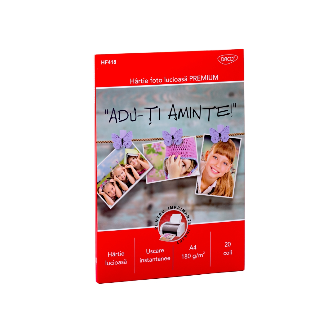 Hârtia foto lucioasă Daco este alegerea potrivită pentru imprimarea imaginilor de calitate, cu culori intense și detalii clare. Cu un gramaj de 180 g/mp, oferă un echilibru excelent între flexibilitate și rezistență, fiind ușor de utilizat în imprimantele inkjet.
