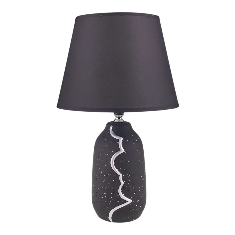 Aceasta veioză este realizată cu o bază din ceramică decorată cu stropi, care îi conferă un aspect modern și ușor artistic, completat de un abajur din pânză ce difuzează o lumină blândă și confortabilă. Designul său o face ușor de integrat în diferite stiluri de amenajare, de la cele simple la cele mai decorative. Având o înălțime de aproximativ 38 cm și o bază de circa 23 cm, veioza are dimensiuni potrivite pentru a fi așezată pe noptieră, comodă sau masă laterală, oferind atât iluminare ambientală, cât și un plus de stil spațiului în care este folosită.