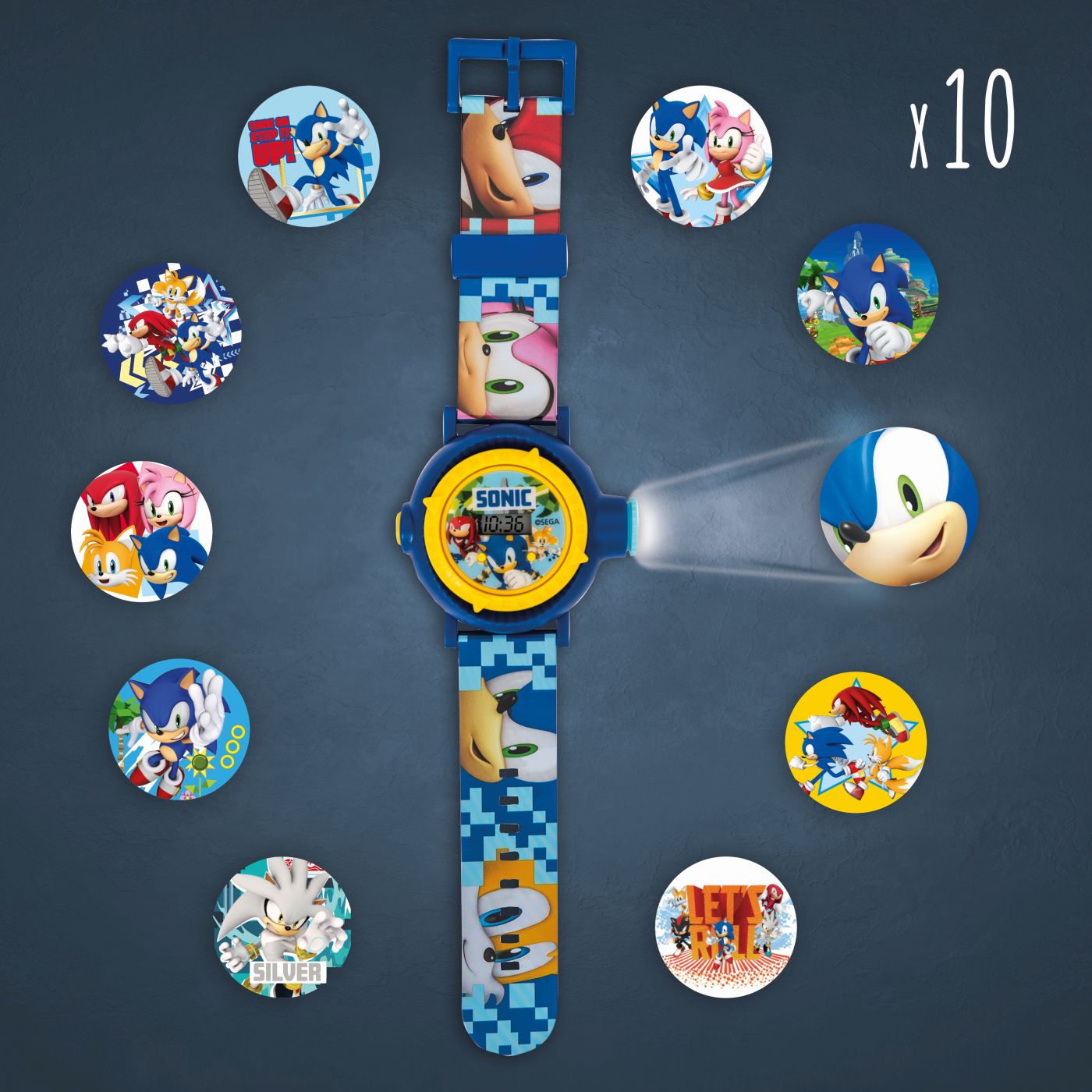 Ceas digital cu proiector Sonic. Proiecteaza 10 imagini diferite. Ceasul digital pentru copii de culoare albastra are curea din cauciuc/plastic, pentru o potrivire stabila pe mana copilului si rezistenta la utilizarea zilnica.