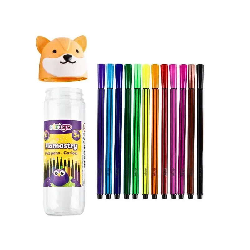 Transformă desenul într-o joacă și mai distractivă cu aceste carioci lavabile Strigo, ambalate într-o cutie simpatică cu capac în formă de vulpiță! Setul conține 12 culori vibrante, perfecte pentru micii artiști de la 3 ani în sus. Cerneala se curăță ușor de pe piele și majoritatea materialelor textile.