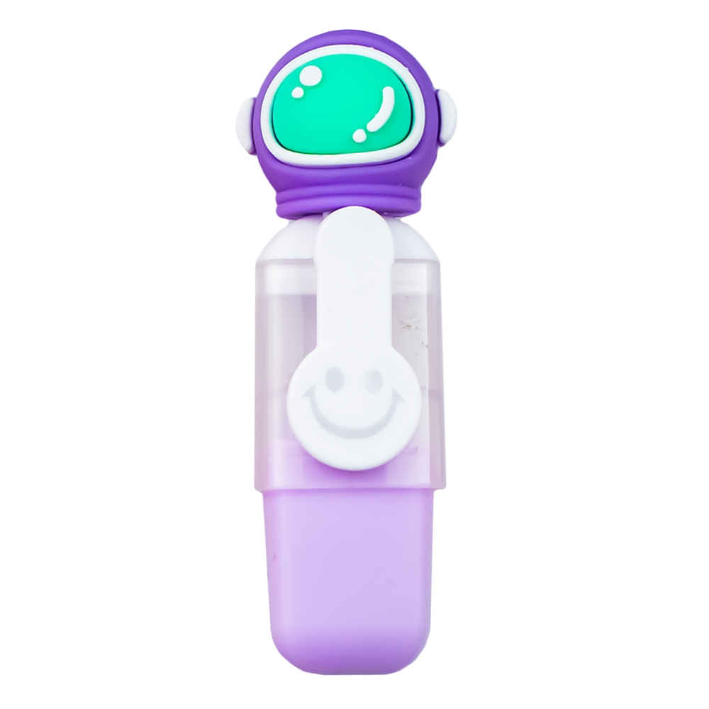 Fiecare text marker are corpul realizat din plastic, colorat in nuanta scrierii, iar capacul este prevazut cu clipuri cu imprimeu argintiu, cu fata zambitoare. Pe capac se afla un cap de astronaut din cauciuc, detasabil, care ofera un design deosebit si atractiv pentru copii.