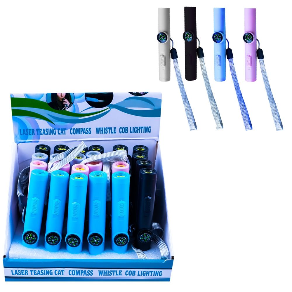 - Fluierul are 4 functii diferite fiind echipat si cu busola, lumina led si laser. Declansarea luminii led si a laserului se face prin comutarea butonului in pozitiile fata pentru laser si spate pentru led, pozitia centrala intrerupand functiile. Fluierul si laserul ii ajuta pe copii sa gaseasca, atunci cand este nevoie, locatia prietenilor. De asemenea, laserul este extrem de distractiv pentru pisicile jucause. Busola permite ca cei mici sa invete sa monitorizeze schimbarile de directie, obisnuindu-i cu ghidarea directionala, esentiala pentru drumetiile in medii nefamiliare. Instrumentul 4 in 1 dispune si de lanterna cu lumina LED, aceasta fiind o sursa de lumina potrivita in conditii de lasare a serii sau pe timp de noapte. Lanterna are lumina led COB care permite o utilizare mai eficienta a energiei.