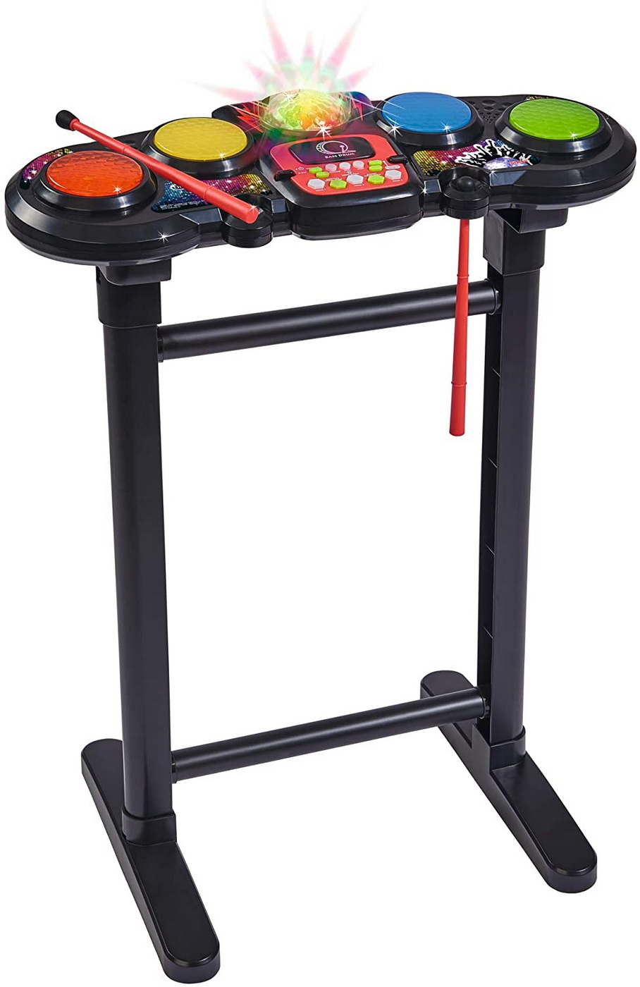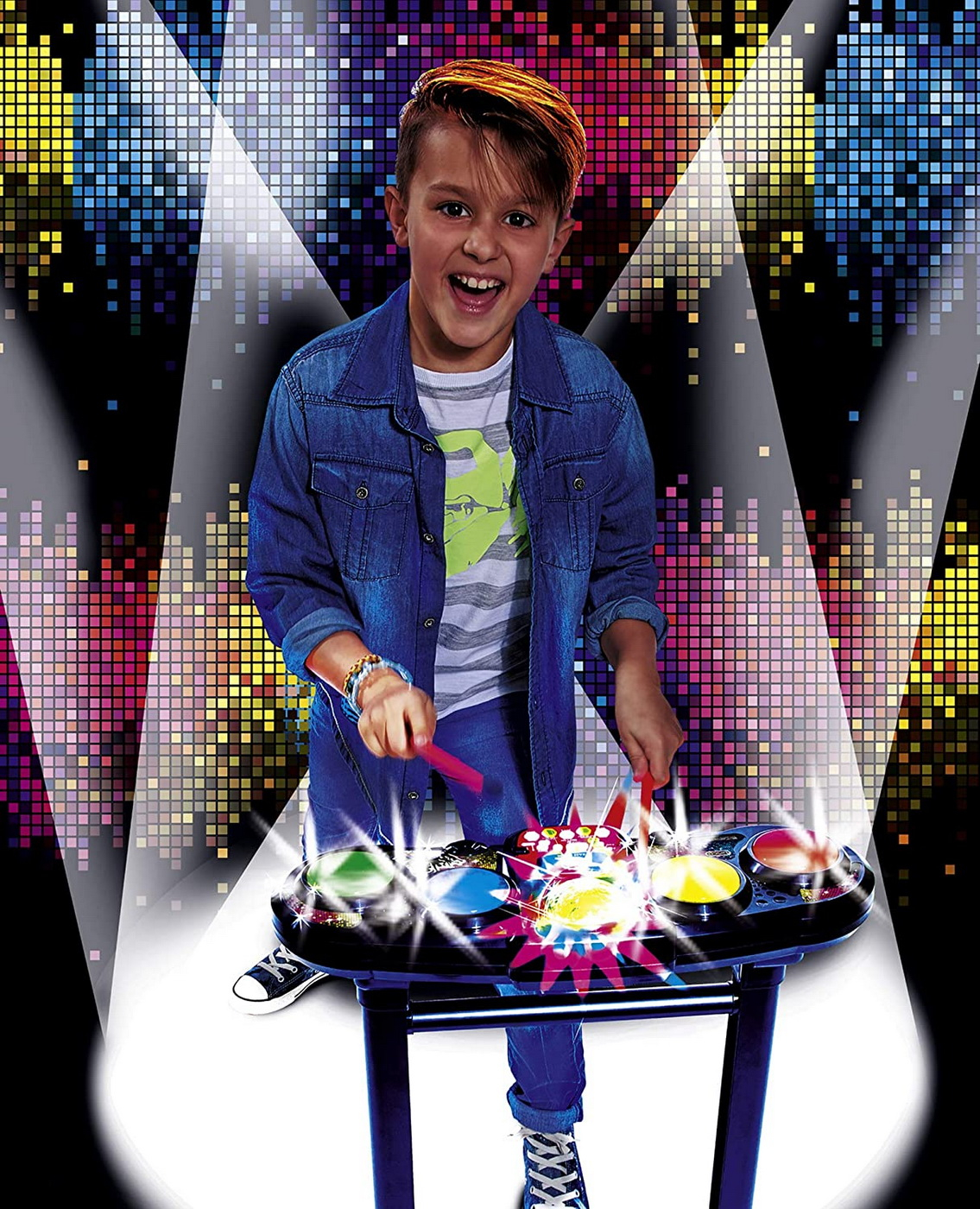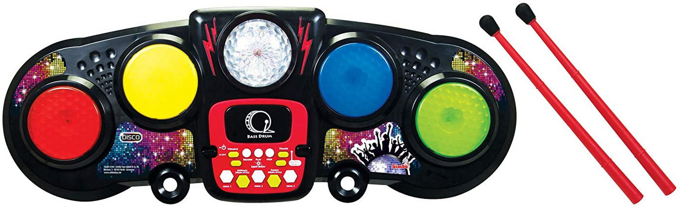 Creati ritmuri cool pe tobele My Music World Disco. Toba are o inaltime de 70 cm si este potrivita copiilor cu varsta de peste 6 ani. Cu cele doua bete incluse, puteti incepe muzica. Setul este echipat cu patru tobe, sase ritmuri, sunete de tobe, sunete suplimentare, o oprire automata si un control de volum si tempo. Mingea disco asigura efectele de iluminare adecvate si reglajul disco. Datorita functiei de inregistrare, propriile compozitii pot fi inregistrate direct si redate din nou si din nou.