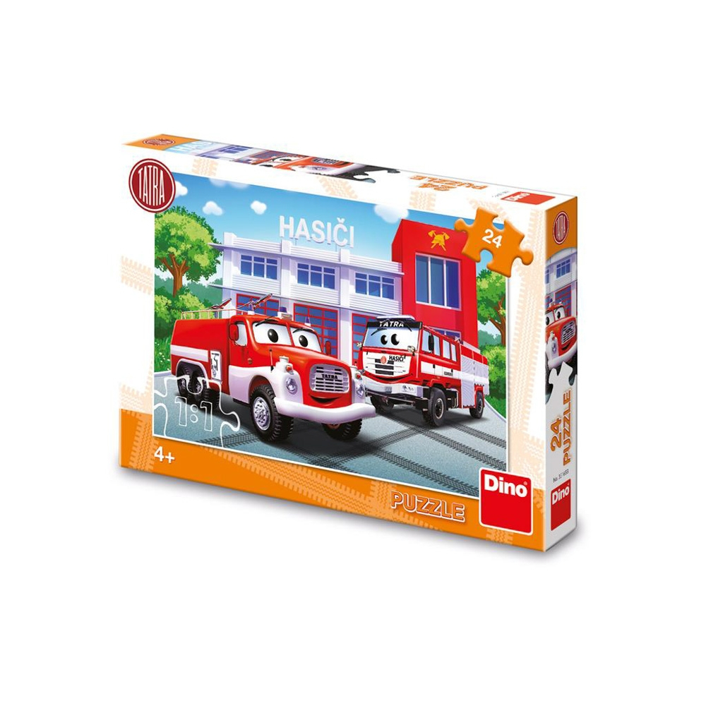 Puzzle-ul Pompieri de la Dino Toys aduce în prim-plan două camioane de pompieri Tatra, parcate în fața sediului detașamentului, gata să răspundă oricărei urgențe. Cele 24 de piese sunt realizate din carton durabil și sigur, fiind rezistente chiar și la manipularea mai puțin atentă a celor mici.