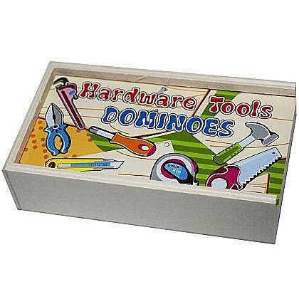 - Jocul domino este confectionat din lemn de inalta calitate, pe piesele caruia sunt desenate cate doua unelte;
