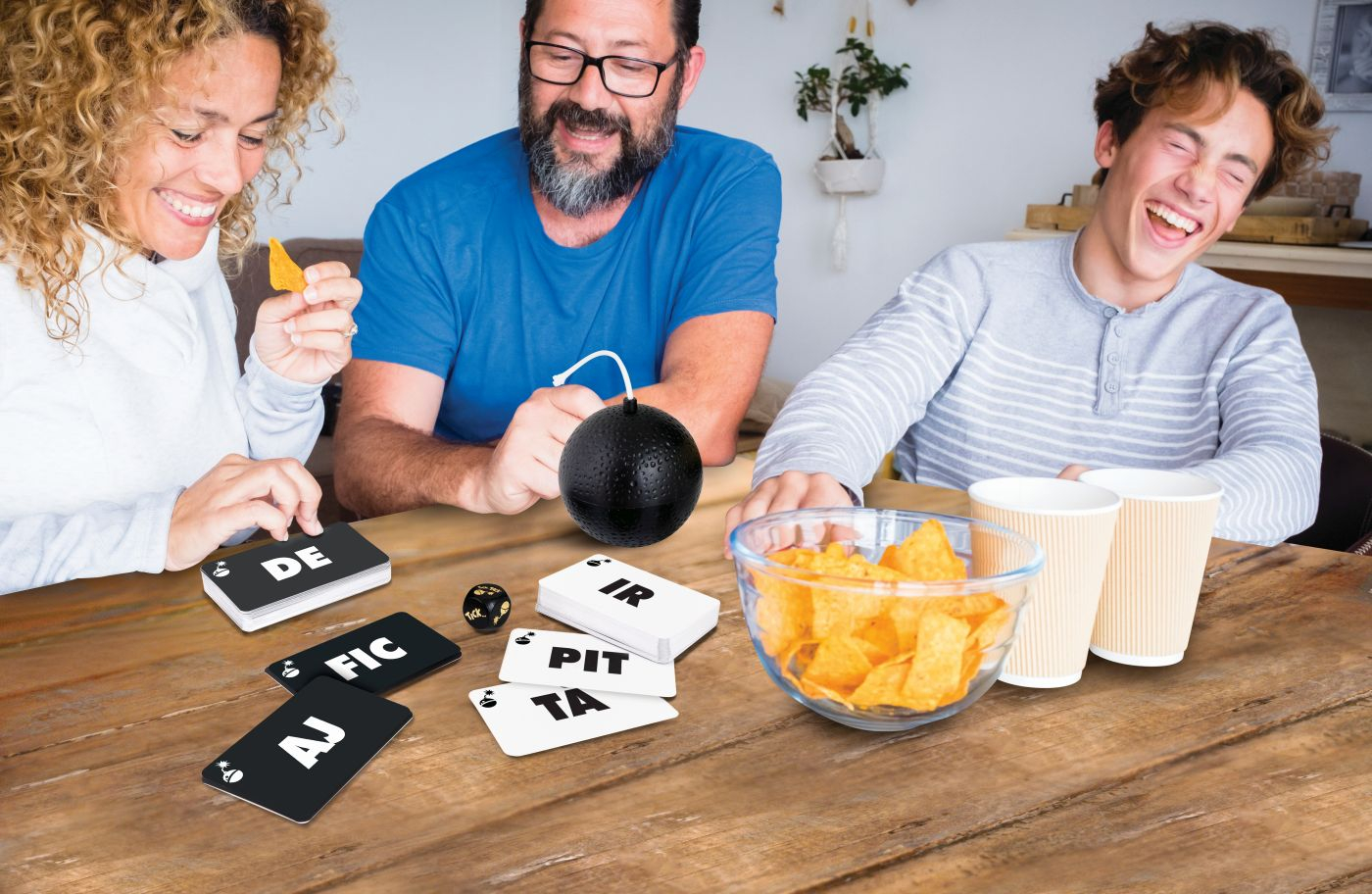 Arunca zarul pentru a vedea unde in cuvant trebuie folosite literele de pe carte. Activeaza bomba, extrage o carte si gandeste rapid un cuvant care sa contina toate literele, tinand cont de regula stabilita de zar. Da bomba urmatorului jucator, care va trebui sa gaseasca un cuvant diferit cu aceleasi litere. Scapa de bomba inainte sa explodeze in mainile tale! Atentie: timpul exploziei este aleator, deci bomba poate exploda in orice moment! Numar jucatori: 2+. Varsta recomandata: 10+ ani. Durata medie a jocului: 30 minute. Jocul include: 1 bomba electronica, 1 zar, 110 carti, brosura cu instructiuni.