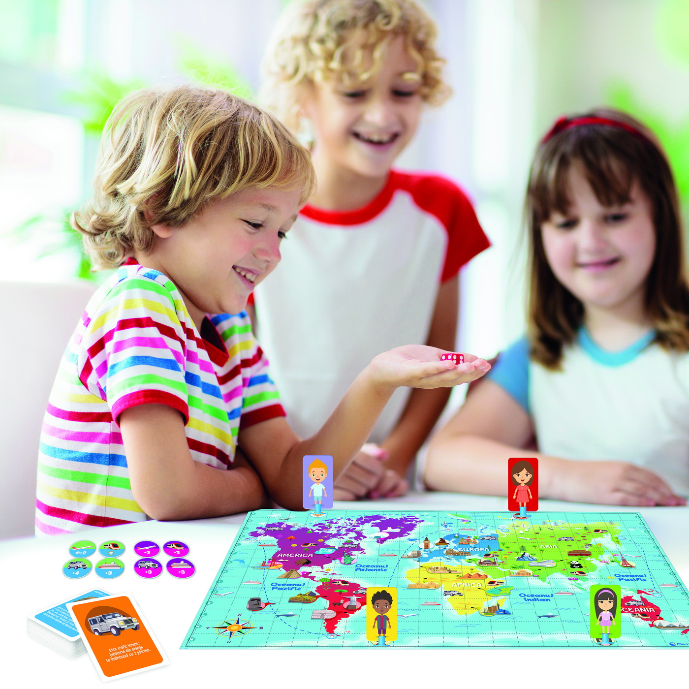 Aparat de fotografiat, harta si jurnal…valiza voastra este aproape gata pentru a incepe o aventura fantastica calatorind in jurul lumii! Inaintati pe plansa pentru a ajunge la destinatiile calatoriei voastre, luati cele mai rapide mijloace de transport, insa aveti grija de imprejurarile neprevazute care se pot ivi in calea voastra. Profitati de talentele voastre de exploratori si alegeti cel mai bun itinerariu pentru a va finaliza calatoria inaintea jucatorilor rivali! Cu doua nivele de dificultate pentru copiii mici si mari. Varsta recomandata 6 ani+, producator Clementoni.