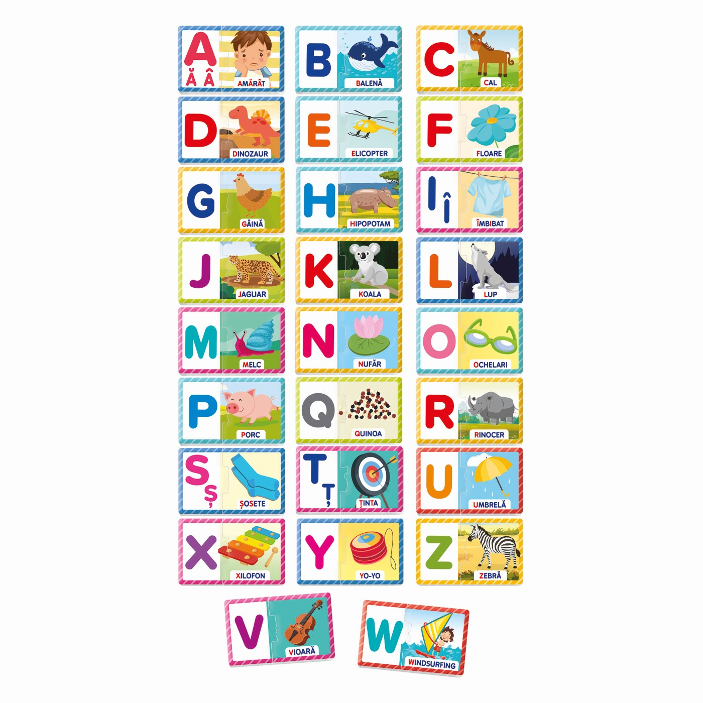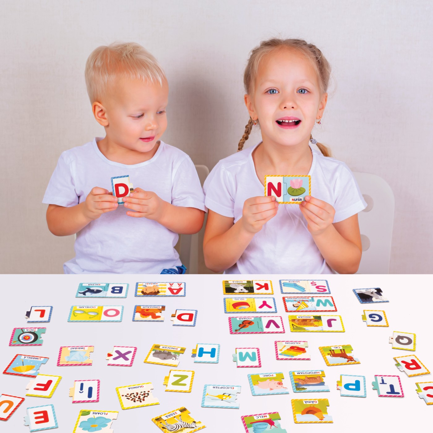 „AGERINO DE LA A LA Z" Un joc educativ format din piese de puzzle cu litere si lucruri care incep cu aceeasi litera, astfel incat copiii sa invete alfabetul si sa faca legatura litera-cuvant. Mai mult, de indata ce copilul este familiarizat cu literele, poate incepe sa citeasca cuvintele litera cu litera, descoperind astfel cuvantul magic al lecturii!".Valori dezvoltate: logica, cunostinte despre lume, autonomia, sociabilitatea, memoria, limba straina, aptitudinile motorii. Toate jocurile lui Agerino au fost concepute de specialisti in pedagogie si psihologie si au fost testate in scoli. Varsta recomandata 3+.