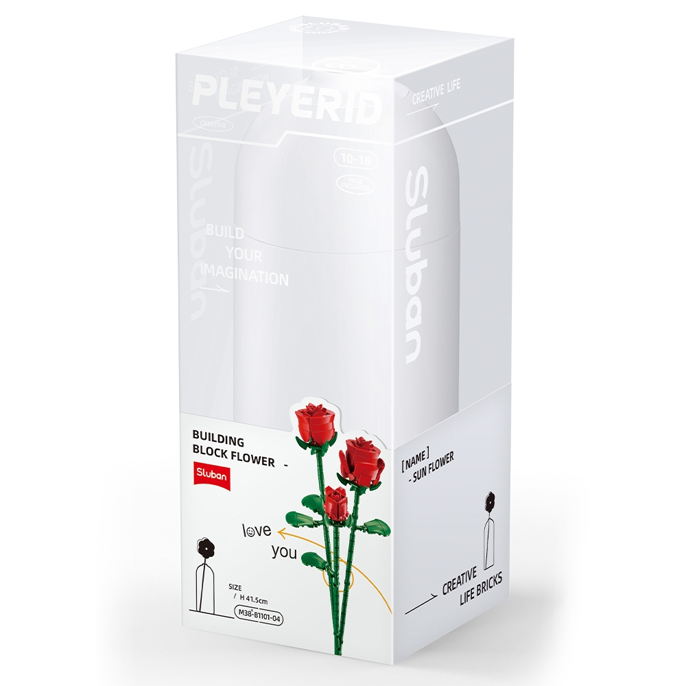 Setul de construcție Flowers Trandafir roșu de la Sluban este ideal pentru cei care apreciază florile clasice reinterpretate într-o formă creativă. Setul conține 258 de piese, însoțite de instrucțiuni de montaj în imagini, care fac procesul de asamblare clar și plăcut. Din totalul pieselor, 11 sunt utilizate pentru asamblarea vazei, iar celelalte 247 sunt dedicate construirii unui buchet pasional de trandafiri roșii, cu petale bogate și frunze verzi atent detaliate.