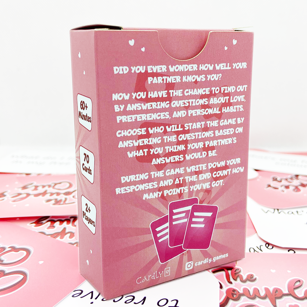 Jocul vă încurajează să lăsați telefoanele deoparte și să vă concentrați pe ce este cu adevărat important: voi doi. Vă ajută să înțelegeți limbajele iubirii, obiceiurile, dorințele și planurile de viitor ale partenerului într-un mod natural și plăcut.