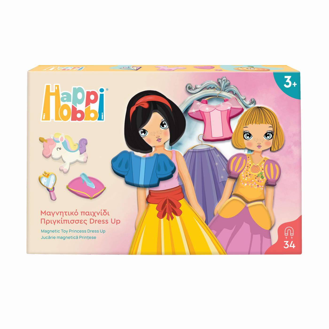 Printesele te invita intr-o lume plina de culoare si fantezie! Combina cele 34 de piese din carton cu magneti – rochii, coafuri si accesorii – pentru a crea cele mai frumoase printese. Poti urma modelele de pe cele 7 carti incluse sau iti poti lasa imaginatia libera si sa creezi propriile tale tinute regale. Jocul ofera multiple posibilitati de joaca prin imitatie, stimuland creativitatea, atentia si coordonarea copiilor. Te poti juca impreuna cu prietenii sau parintii, inventand povesti magice despre printesele tale preferate. Poti chiar sa masori rochiile si accesoriile sau sa le desenezi contururile pe hartie pentru a le colora. O activitate educativa si creativa care ii tine pe copii departe de ecrane si le ofera ore intregi de distractie imaginativa. Contine: 34 de magneti din carton, 1 plansa magnetica.