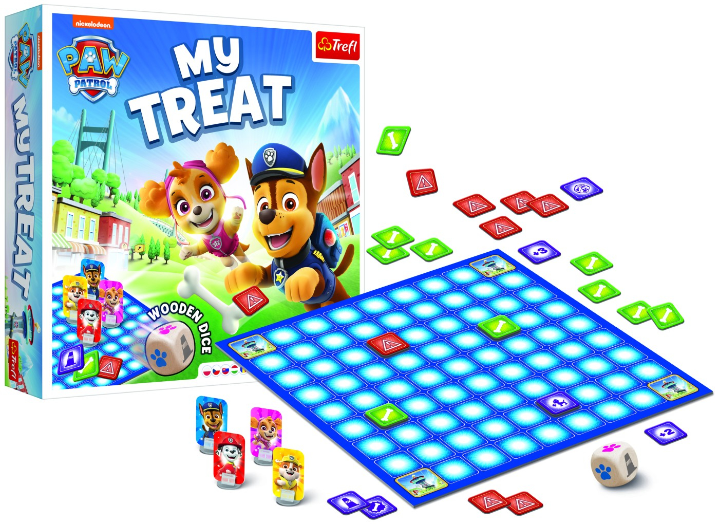 Recompensa mea este un joc vesel dedicat celor mai mici copii. Ia parte la goana dupa bunatati! Traieste o aventura uimitoare In compania personajelor Indragite din animatia Paw Patrol. Jocul are un zar special cu labe, datorita caruia poti juca ca 4 personaje diferite care cauta rasfat. Atentie totusi la obstacole! Ele va pot Ingreuna finalizarea sarcinii. Continutul pachetului: o placa, 10 placi cu dulceata, 9 placi cu obstacole, 6 piese speciale (pentru varianta a 2-a a jocului), 4 pioni cu o baza, zar cu labute, instructiuni.