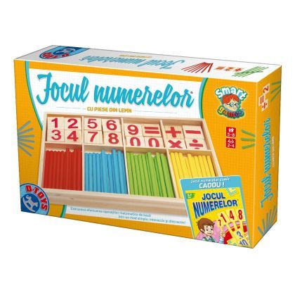 Jocul numerelor cu piese din lemn este special conceput pentru copii cu vârsta între 5-8 ani cu scopul de a exersa efectuarea operațiilor matematice de bază. Jocul conține 52 bețișoare de culori diferite, 19 jetoane cu numere și 5 jetoane cu semne matematice. Poate fi folosit acasă, dar poate fi un instrument didactic eficient și în grădinițe sau școli.