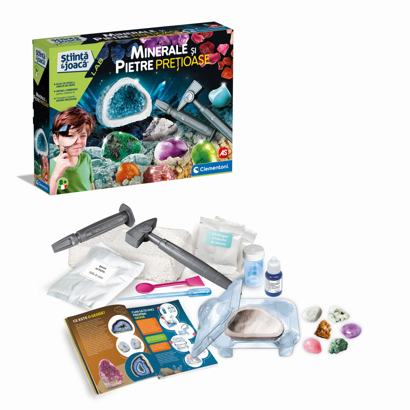 O caramida prin care trebuie sapat pentru a descoperi pietrele si mineralele! O geoda care trebuie creata si decorata cu cristale stralucitoare! O multime de pietre si minerale de descoperit si colectat. Fa-ti propria geoda!