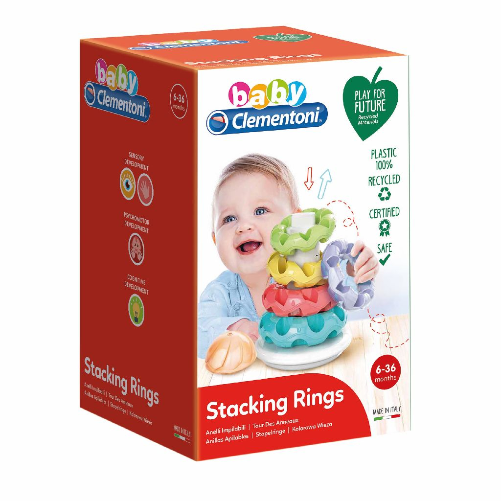 Descoperă jucăria de stivuit cu inele Clementoni, creată special pentru micuții de la 6 luni în sus. Setul conține inele de diferite culori și dimensiuni, concepute pentru a fi ușor de prins de mâinile mici ale copilului. Jocul de stivuire stimulează coordonarea ochi-mână, dezvoltarea cognitivă și abilitățile psihomotorii, în timp ce culorile vii atrag atenția și încurajează explorarea.