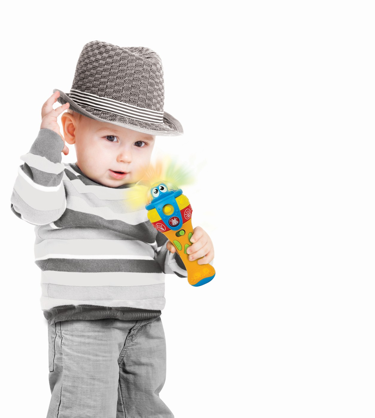 Microfonul cu sunete de animale, ritmuri variate si lumini este o jucarie captivanta si educativa pentru copiii cu varsta de 12 luni si peste. Proiectat pentru a stimula creativitatea si dezvoltarea auditiva a celor mici, acest microfon ofera o gama larga de functionalitati interactive care ii vor fascina pe cei mici. Una dintre caracteristicile distincte ale acestui microfon este varietatea sa de sunete. Microfonul este echipat si cu diferite ritmuri muzicale, oferindu-le copiilor posibilitatea de a crea propriile lor melodii si de a experimenta cu ritmul si tempo-ul. Acest aspect nu doar ca incurajeaza interesul pentru muzica, dar si sprijina dezvoltarea coordonarii motorii. Lumini colorate si interactive se activeaza in timpul utilizarii, transformand experienta auditiva intr-una vizuala si atragatoare. Aceasta caracteristica nu numai ca stimuleaza simturile vizuale ale copiilor, dar si imbunatateste experienta generala de joaca, oferindu-le o interfata distractiva si captivanta. Microfonul are capacitatea de a amplifica vocea copilului atunci cand tasta este tinuta apasata. Functia de agitare pentru activarea sunetelor si luminilor adauga o doza de imprevizibilitate si distractie. Copiii pot sa agite microfonul pentru a declansa efecte sonore si lumini, ceea ce ii incurajeaza sa exploreze si sa interactioneze in moduri diferite cu jucaria lor preferata.