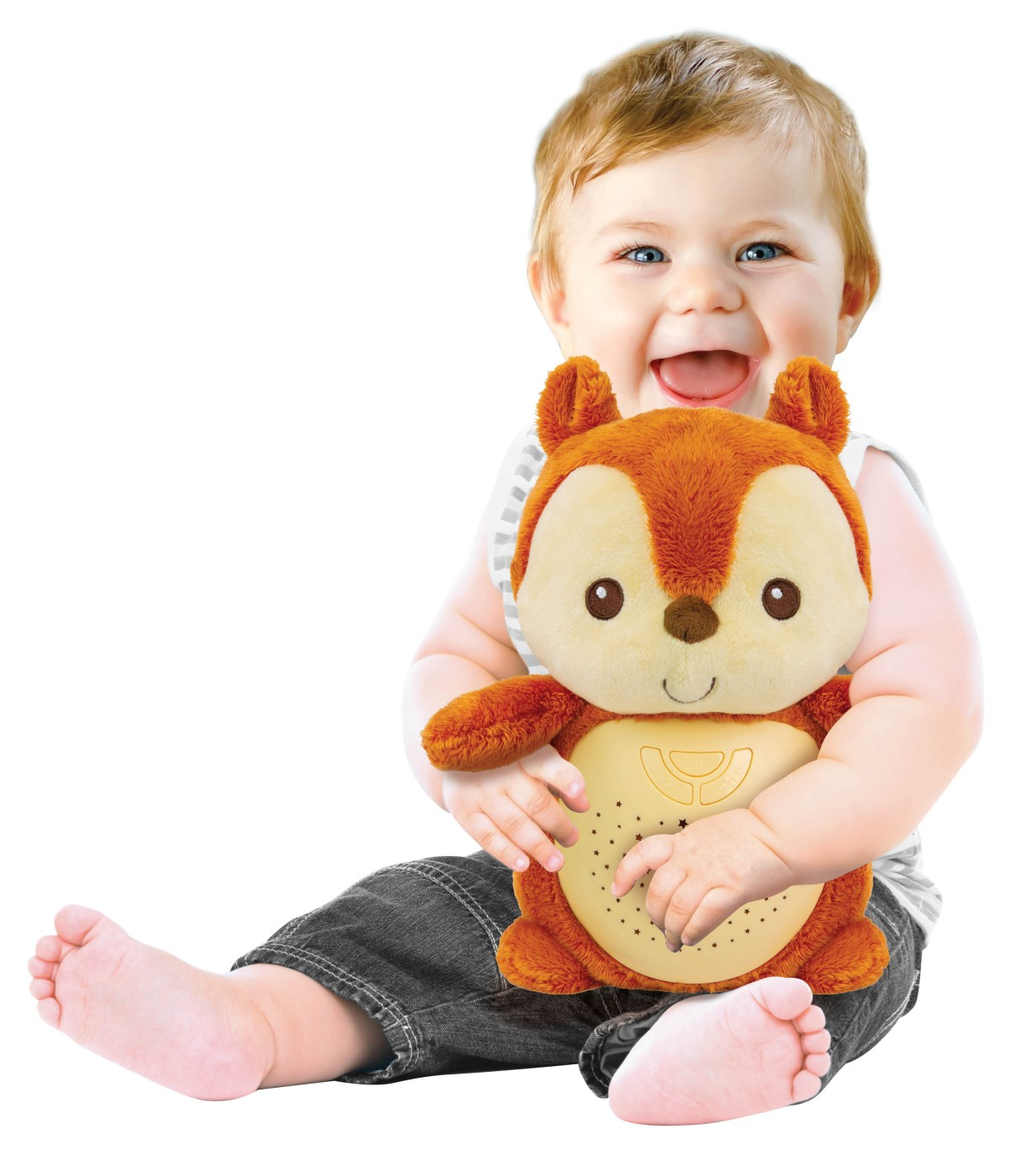 Proiectorul si lampa de veghe 2-in-1 in forma de veverita este o jucarie multifunctionala si educativa, perfecta pentru a linisti si a acompania copiii de la nastere. Aceasta jucarie inovatoare ofera o combinatie de lumina linistitoare si sunete placute, creand un mediu confortabil si sigur pentru somnul celor mici. Proiectorul are capacitatea de a proiecta un cer instelat pe tavan sau pereti, transformand camera copilului intr-un univers magic si relaxant. Lampa de veghe emite o lumina blanda in diferite culori, care poate fi ajustata pentru a se potrivi preferintelor copilului. Veverita este si un prieten de noapte imbratisabil! Designul sau moale si placut la atingere permite copiilor sa o tina in brate, oferindu-le un sentiment suplimentar de confort si securitate. Veverita luminoasa devine astfel un companion ideal pentru copiii mici, care se pot bucura de prezenta ei atat in timpul somnului, cat si in timpul jocului. Proiectorul si lampa de veghe 2-in-1 in forma de veverita este echipat cu un buton de muzica care ofera doua optiuni de sunet: sunete din natura sau melodii de leagan linistitoare. Sunetele din natura, precum ciripitul pasarilor sau sunetul apei curgatoare, contribuie la crearea unui mediu relaxant si natural, ideal pentru a calma si a adormi copilul. Melodiile de leagan linistitoare sunt perfecte pentru a induce somnul, oferind o atmosfera calma si placuta.