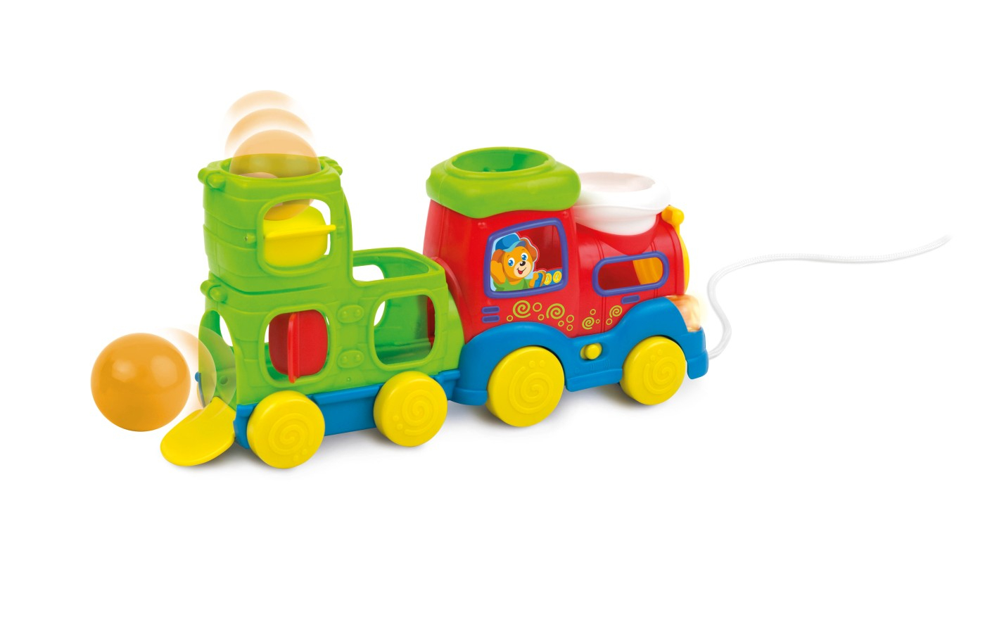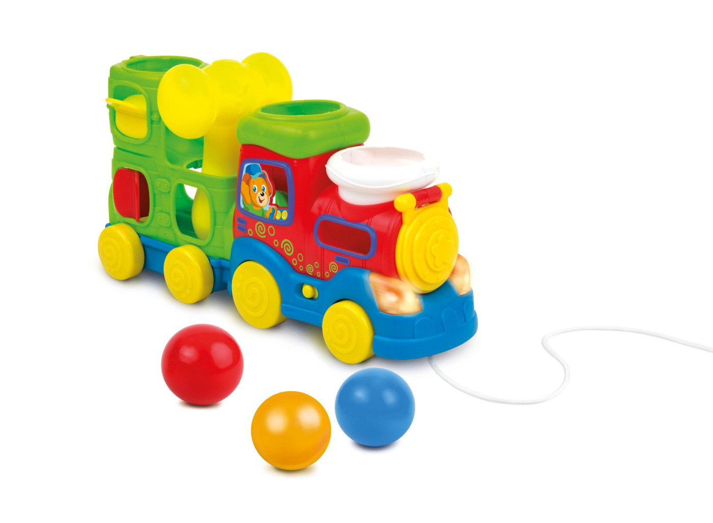 Trenuletul muzical cu bile si ciocan este o jucarie captivanta si interactiva destinata copiilor cu varsta de 18 luni si peste. Trenuletul este format dintr-un singur vagon si trei bile colorate, oferind o experienta de joc diversificata. Bilele poate fi stocate in interiorul vagonului, care are si locuri speciale pentru a le impinge cu ciocanul inclus. Aceasta activitate nu doar incurajeaza copilul sa exerseze coordonarea mana-ochi, dar si sa inteleaga conceptele de spatiu si relatii cauzale. Un buton ON/OFF simplu permite controlul jucariei, atunci cand este activat, trenuletul emite diverse melodii vesele si lumini. In plus, trenuletul este echipat cu o ata de tras, ceea ce il transforma intr-o jucarie interactiva si mobila si contribuie la dezvoltarea abilitatilor motorii mari. Ajuta copiii sa-si dezvolte creativitatea si sa exploreze lumea inconjuratoare.