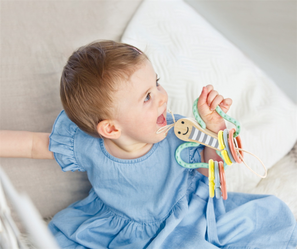Acest fluture dragut este o modalitate distractiva pentru bebelusi de a se distra in timp ce isi practica prinderea si tinerea! Usor de atasat la un patut sau carucior, aripile fluturelui sunt fabricate din silicon si sunt 100% sigure de mestecat. Trei inele de plastic deschise. Jucariile sunt realizate din lemn, folosind materiale ecologice, vopsite in culori atragatoare cu vopsele nontoxice, care depasesc cele mai inalte si stricte standarde internationale de siguranta si calitate, precum EN71, ISO9001, ASTM F963 si altele. De multi ani, Hape a creat jucarii fantastice, de inalta calitate, folosind materiale ecologice si durabile, fiecare produs fiind atent proiectat pentru a stimula abilitatile senzoriale, fizice si emotionale.