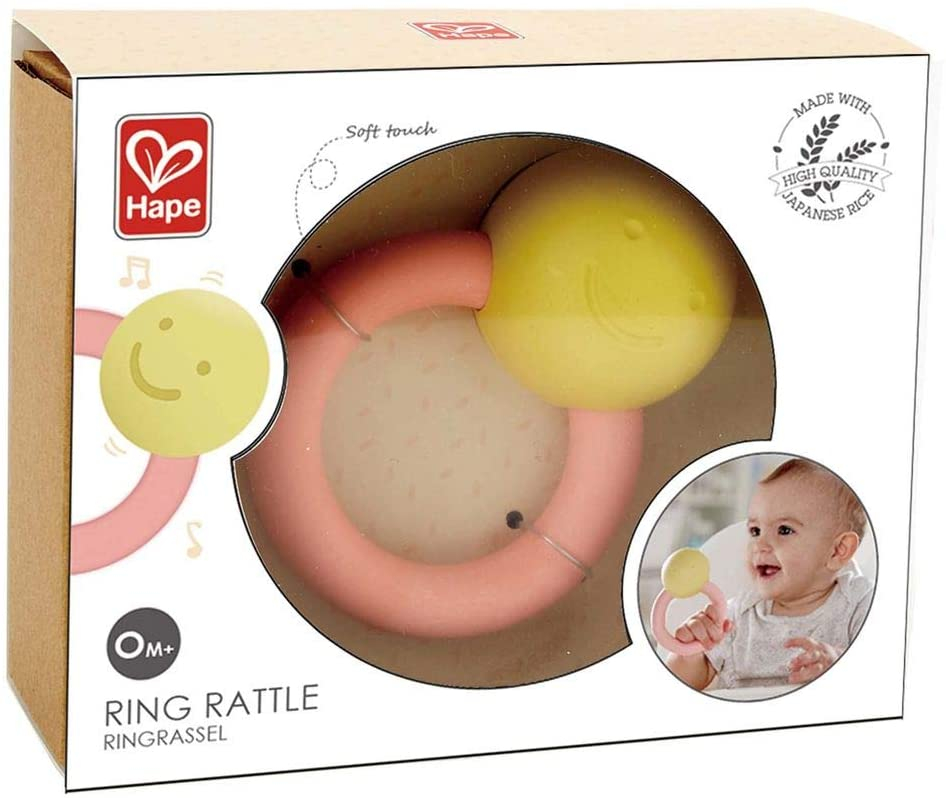 Zornaitoare inel fabricata dintr-un material sigur, pe baza de orez, are o fata fericita atasata la un inel. Usor de apucat si de tinut in mana de catre bebelusi. Agitati-o pentru un sunet usor si distractiv pentru a-i inveseli pe micutii dvs. Fabricat dintr-un material sigur, parfumat, pe baza de orez. 100% sigur de mestecat Un sunet bland stimuleaza constientizarea auditiva. Culorile deosebite stimuleaza acuitatea vizuala. Jucariile sunt realizate din lemn, folosind materiale ecologice, vopsite in culori atragatoare cu vopsele nontoxice, care depasesc cele mai inalte si stricte standarde internationale de siguranta si calitate, precum EN71, ISO9001, ASTM F963 si altele. De multi ani, Hape a creat jucarii fantastice, de inalta calitate, folosind materiale ecologice si durabile, fiecare produs fiind atent proiectat pentru a stimula abilitatile senzoriale, fizice si emotionale.